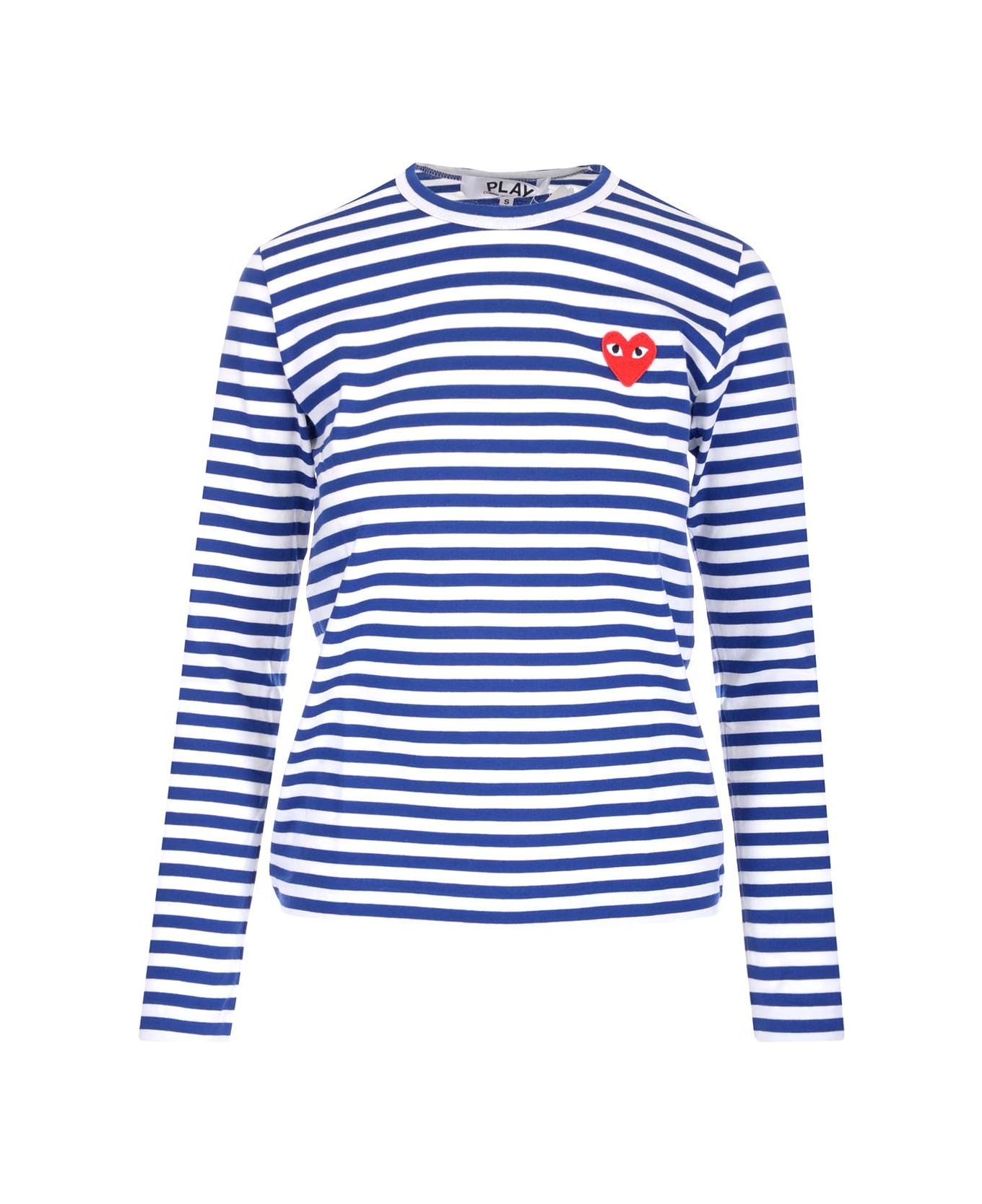Long-sleeved T-shirt in striped cotton with heart patch by Comme des Garçons.