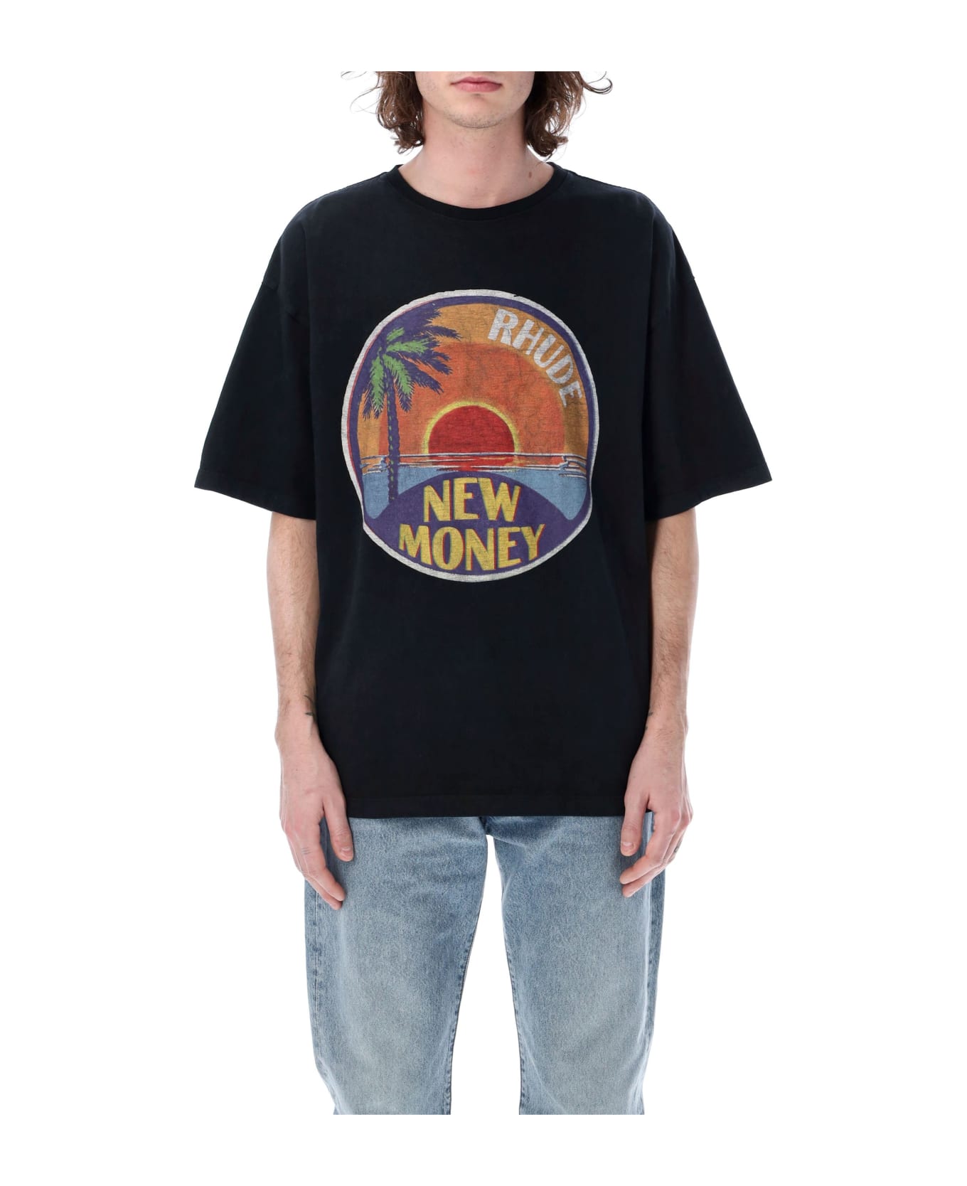 Cotton Sunset T-shirt By Rhude. Featuring: Ribbed Crew Neck Short Sleeves Multicolor Graphic Print At Front Loose Fit The Model Is 1,90 M Tall And He's Wearing Size L