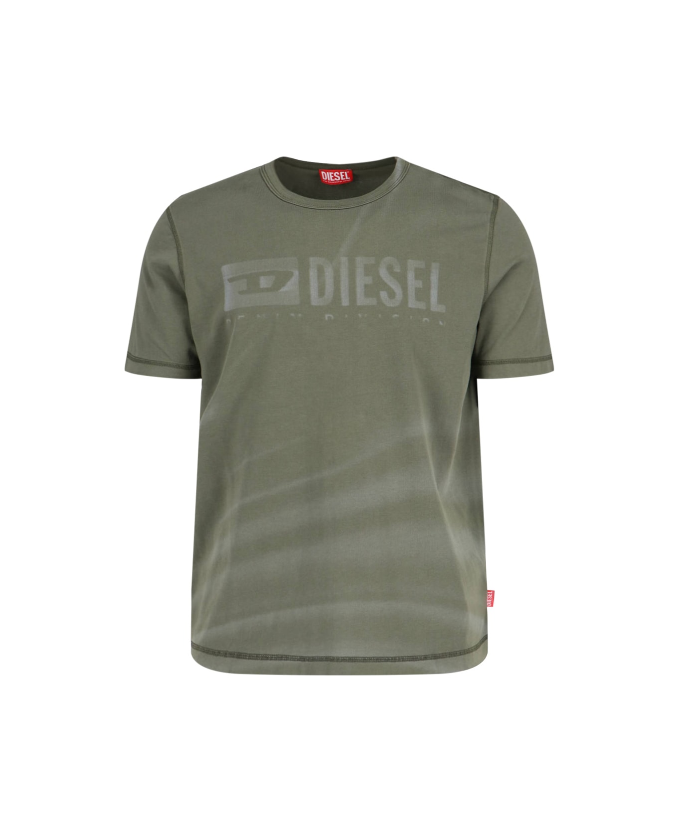 Diesel 'T-Adjust-R13' green cotton t-shirt with distressed wash, crew neck, short sleeves, tonal logo print on the front, straight hem. Composition: 100% Cotton