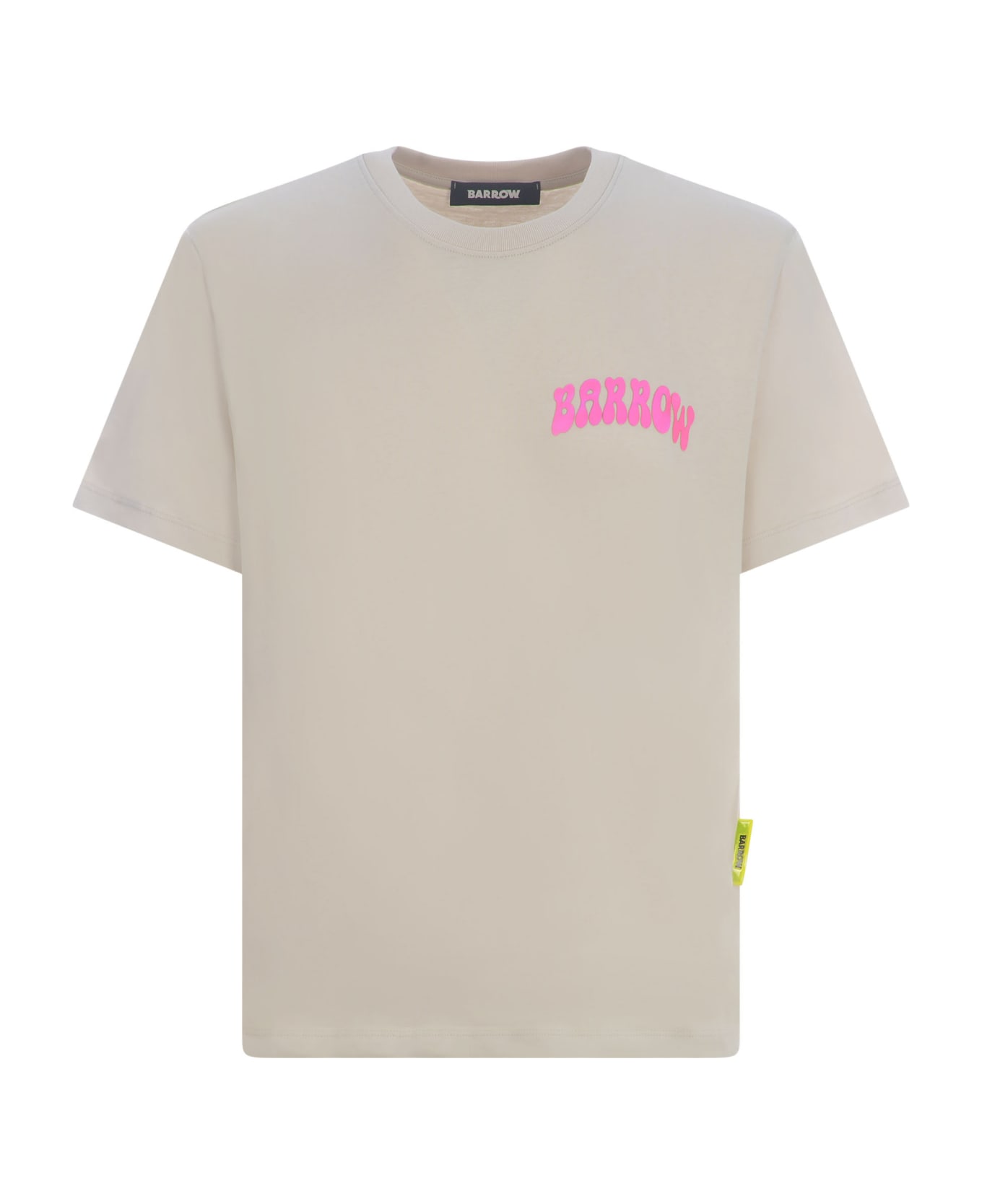 T-shirt Barrow in Taupe cotton. Ribbed crew neck. Short sleeves. Contrasting Fluo Pink "Barrow" writing on the chest. Logo label applied on the side. Maxi "Barrow" and "Smile" Multicolor writing on the back. 100% Cotton Made in Italy