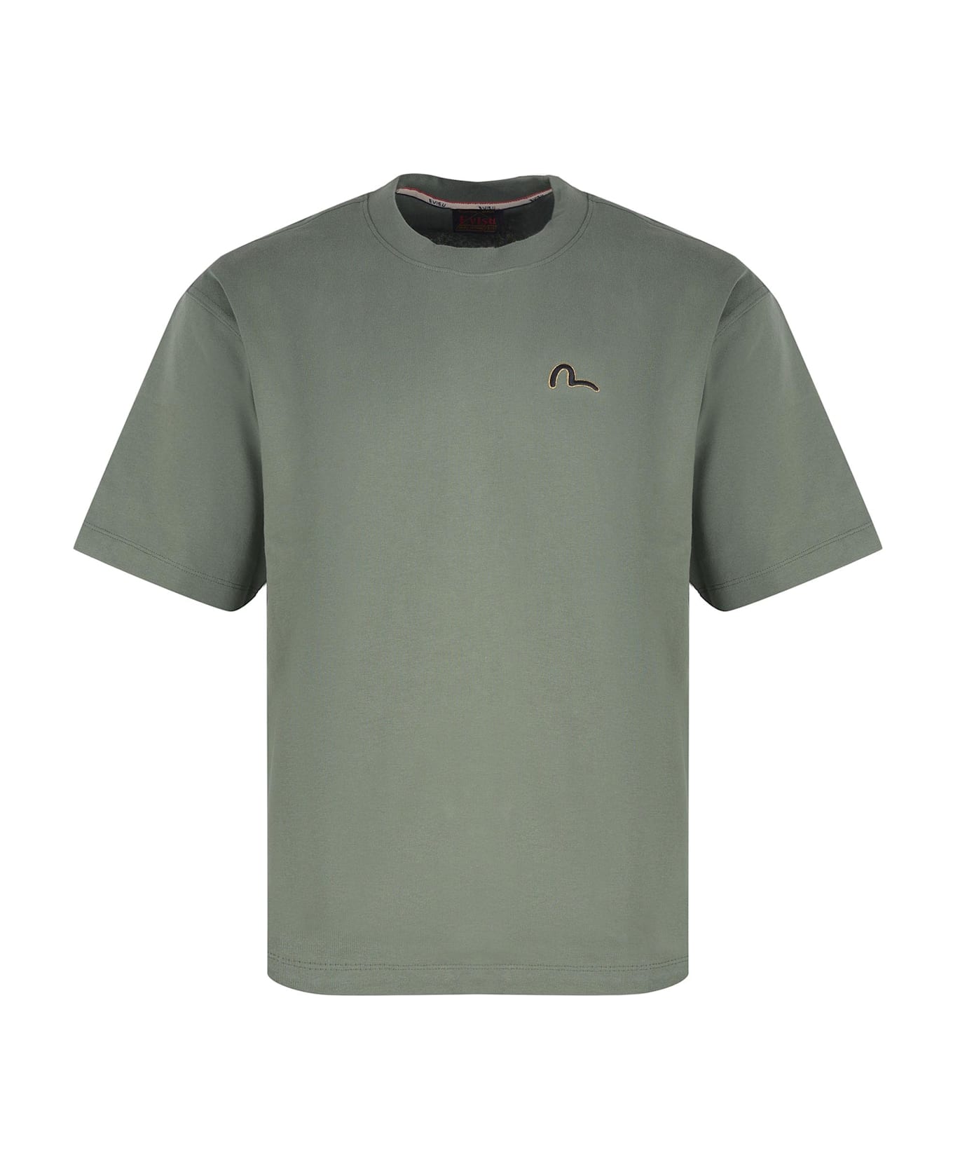 T-shirt Evisu military green cotton. Short sleeves. Embroidered logo on the front. Maxi print and logo on the back. Regular Fit. 100% cotton