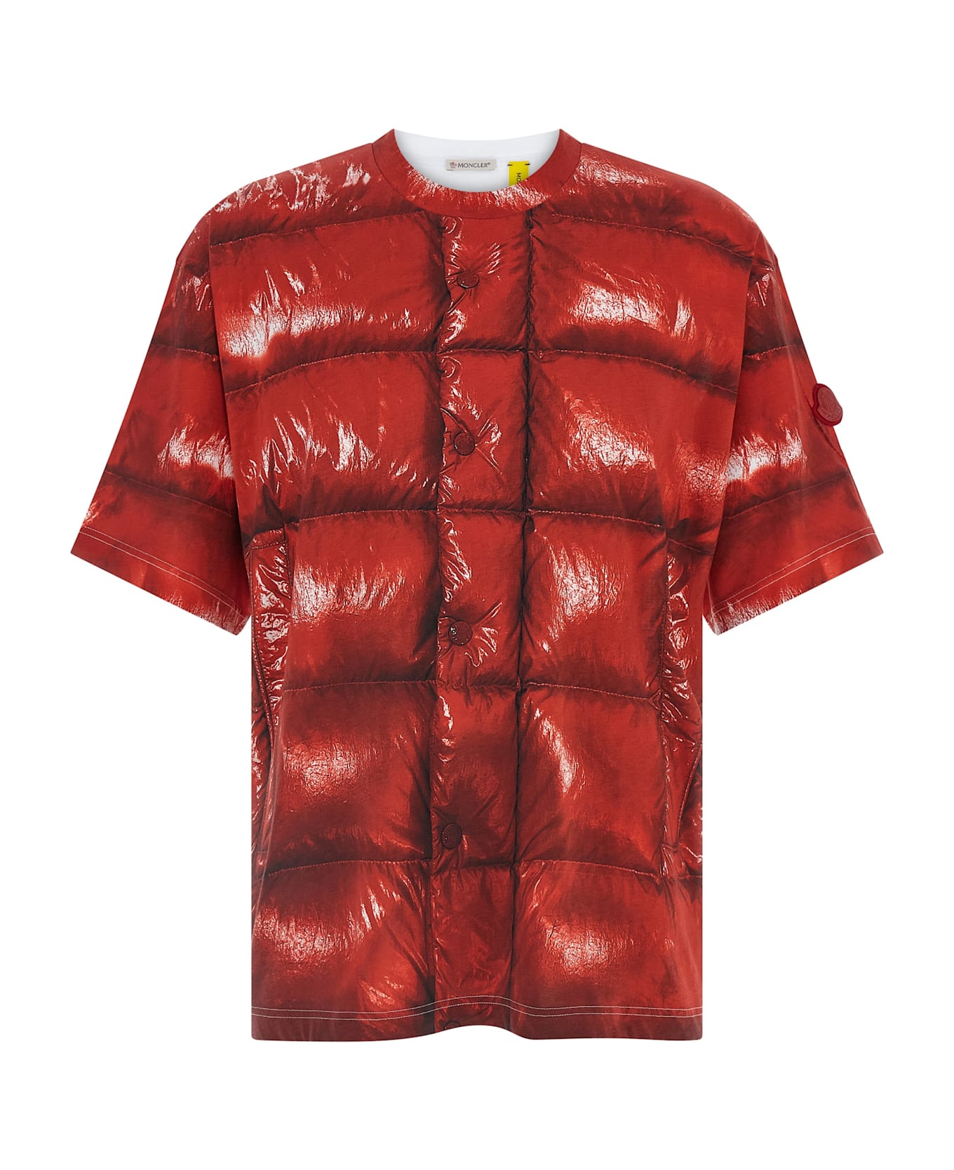 Moncler x A$AP Rocky cotton, crewneck t-shirt with all-over print front panel, side logo patch, and short sleeves.