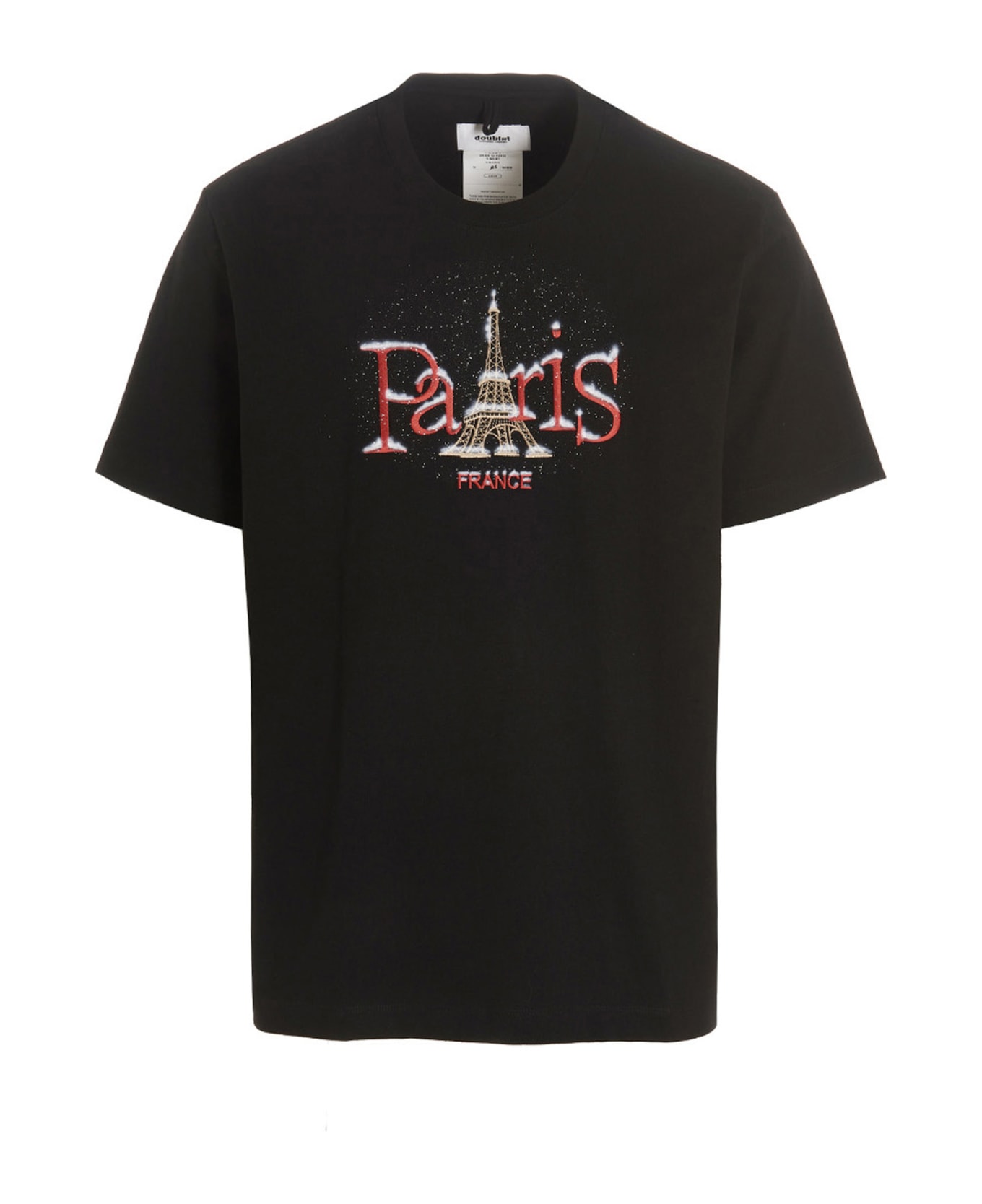 Snow in Paris' cotton, crewneck t-shirt with front embroidery, and short sleeves. : This product is made in recycled cotton.