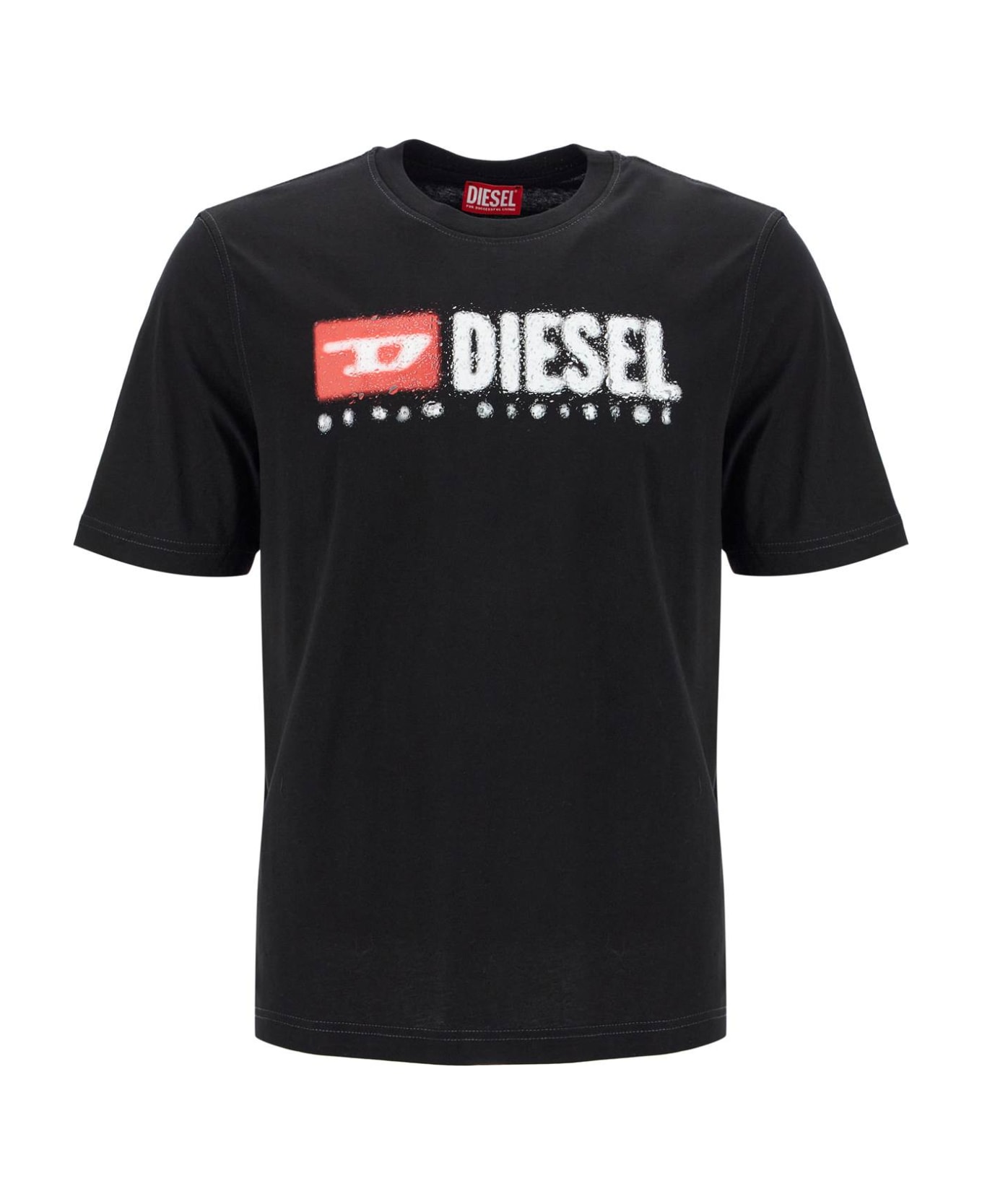 This Diesel crew neck t-shirt is made of lightweight cotton jersey and features a textured water effect logo print on the front. The neckline is finished with ribbing and it has a regular fit. The model is 187 cm tall and wears size L. Composition: 100%CO
