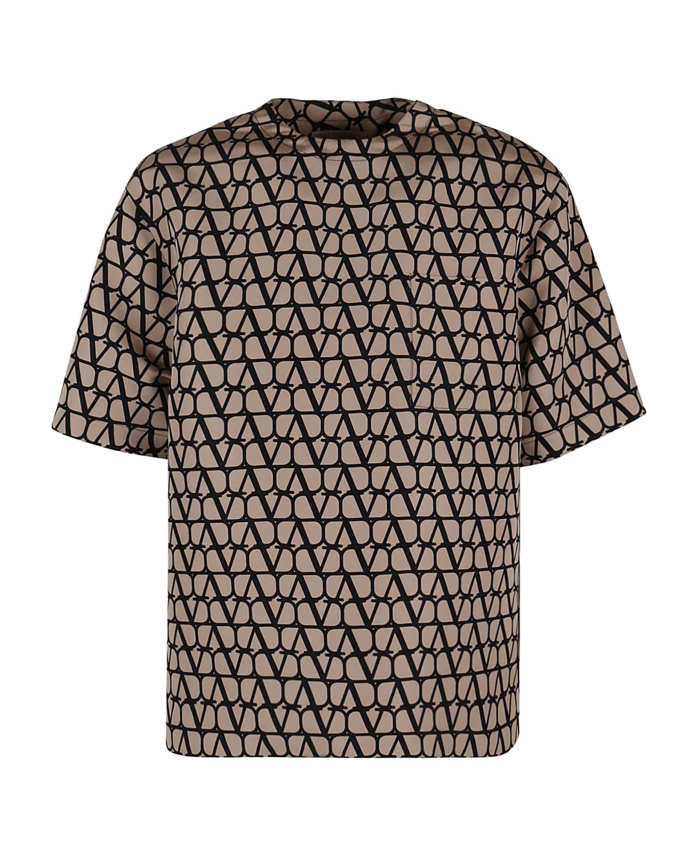 Silk faille T-Shirt with Toile Iconographe BY VALENTINO print. crewneck; short sleeves; one patch pocket on the chest. Oversized fit design.