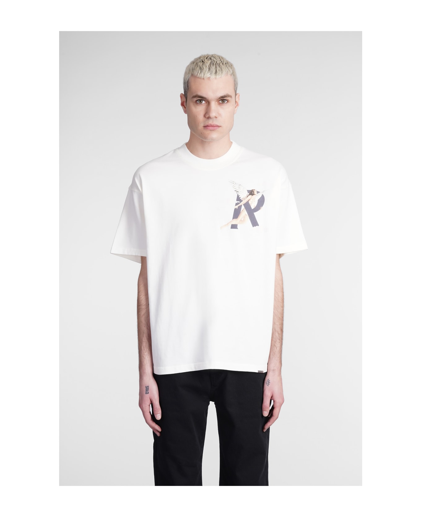 T-Shirt in white cotton, round neck, short sleeves, logo on chest, box fit, back print, 100% cotton, Made in Portugal, Model is 1. 83 and wears size M
