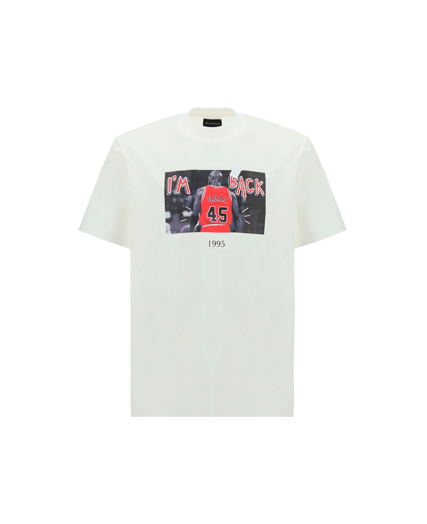 Cotton t-shirt by throwback, 1995 year and print on front, contrasr text on back.
