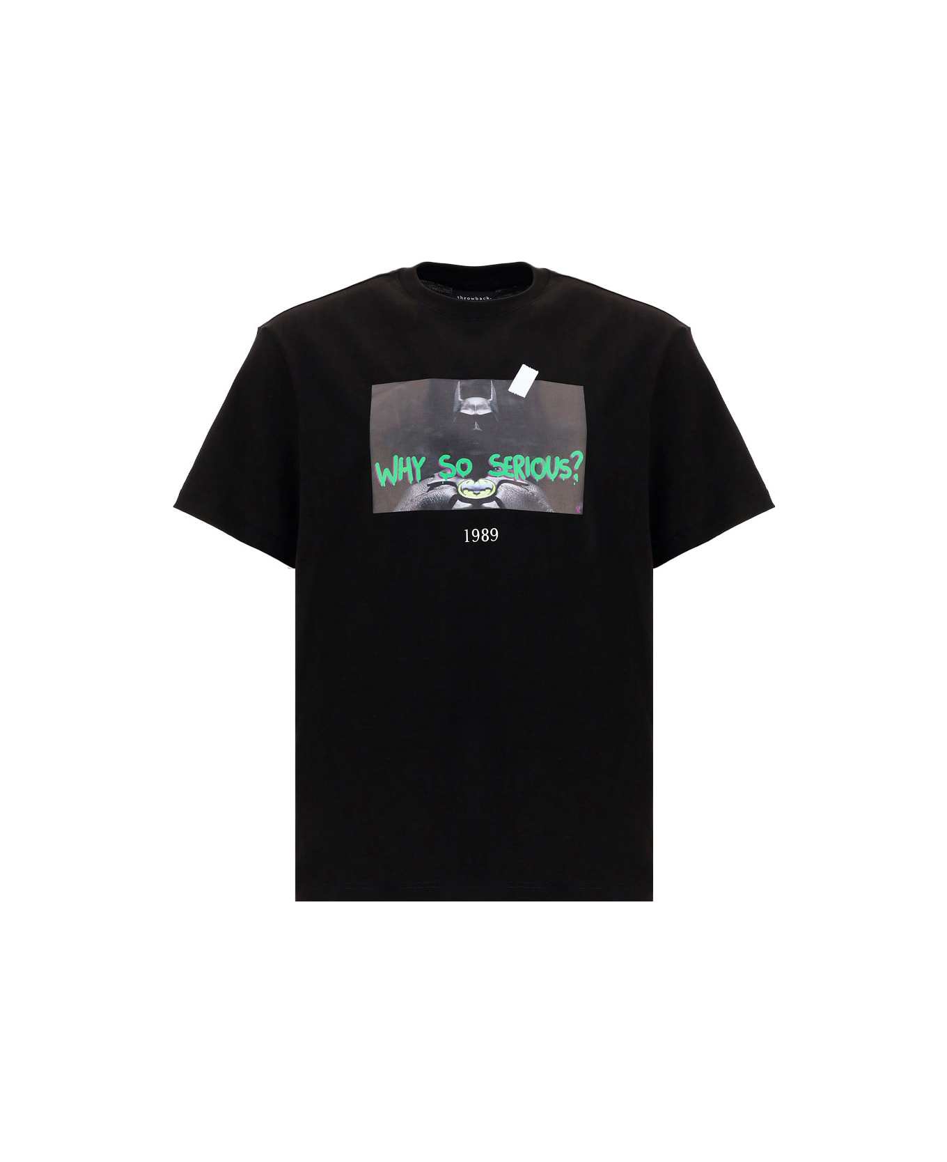 Cotton t-shirt by throwback, ribbed crew neck collar, print on front with date 1989, contrast text on back with logo, relaxed fit.