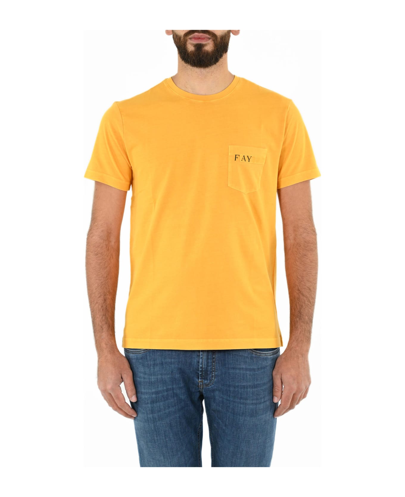 Orange T-shirt from Fay short-sleeved crew-neck t-shirt in garment-dyed jersey, frosted effect. characterized by a breast pocket with the fay logo, it interprets a refined and contemporary casual taste. fitting: comfort