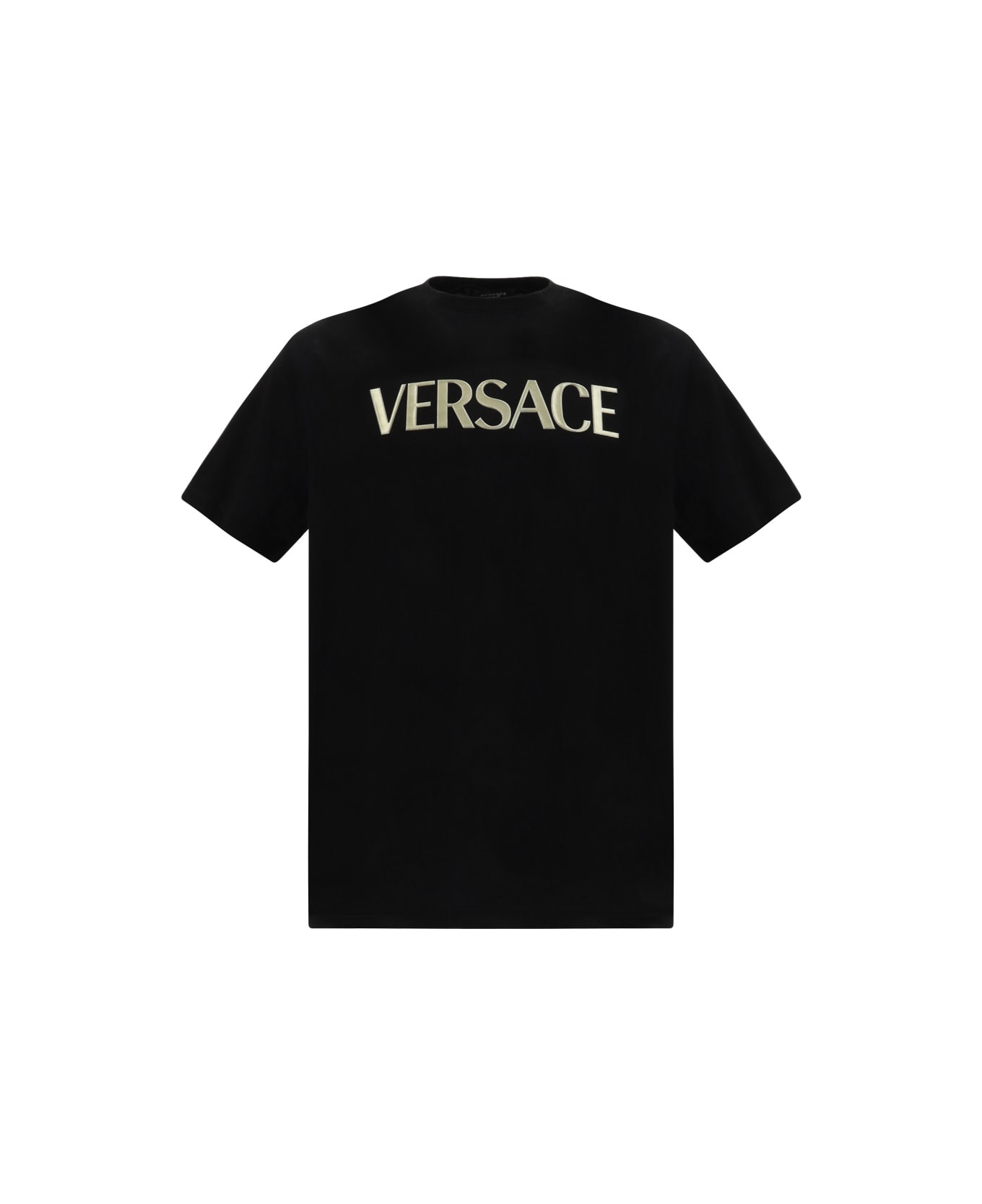 Cotton t-shirt by gianni versace, ribbed crew neck, contrasting iconic brand monogram on front with glitter effect, oversize fit. Composition: 100% % Cotton