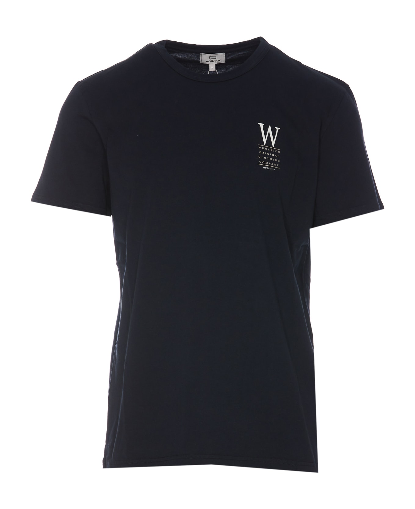 Woolrich blue t-shirt with print logo on the front and on the back, crewneck, short sleeves