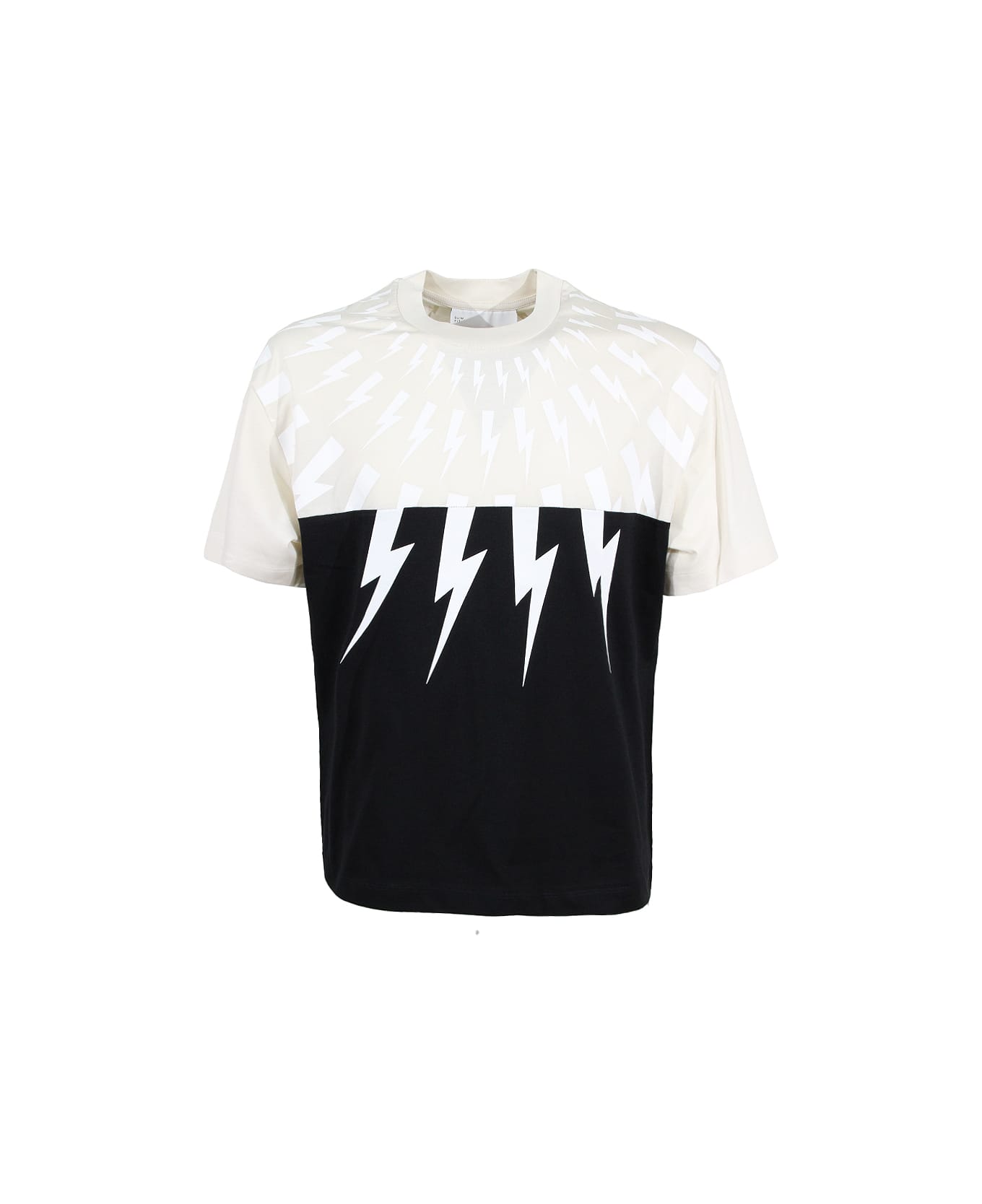 Short-sleeved crew-neck t-shirt with thunderbolt print. Color: Black/White. Composition: 100% Cotton.