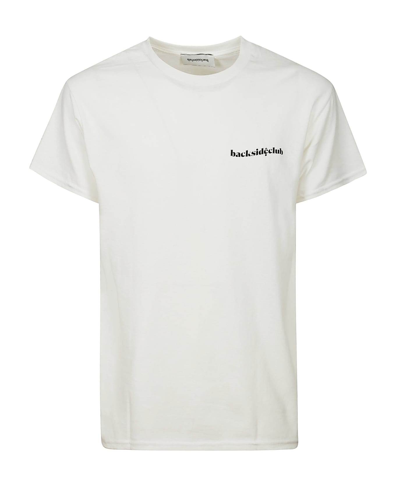Blacksideclub White cotton T-shirt, short sleeves, back print, logo detail on the chest.