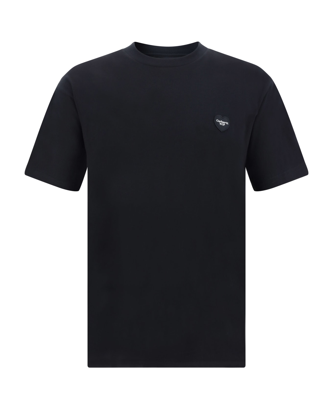 Cotton t-shirt by carhartt wip, ribbed crew neck, logo-embroidered heart patch on front, contrasting printed graphic on back, monochrome pattern, regular fit. Composition: 100% % Cotton