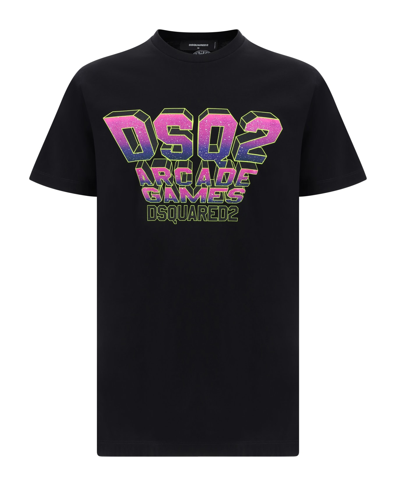 Cotton t-shirt by dsquared2, ribbed crew neck, iconic brand monogram printed in contrasting colour on the front, monochrome pattern, regular fit.