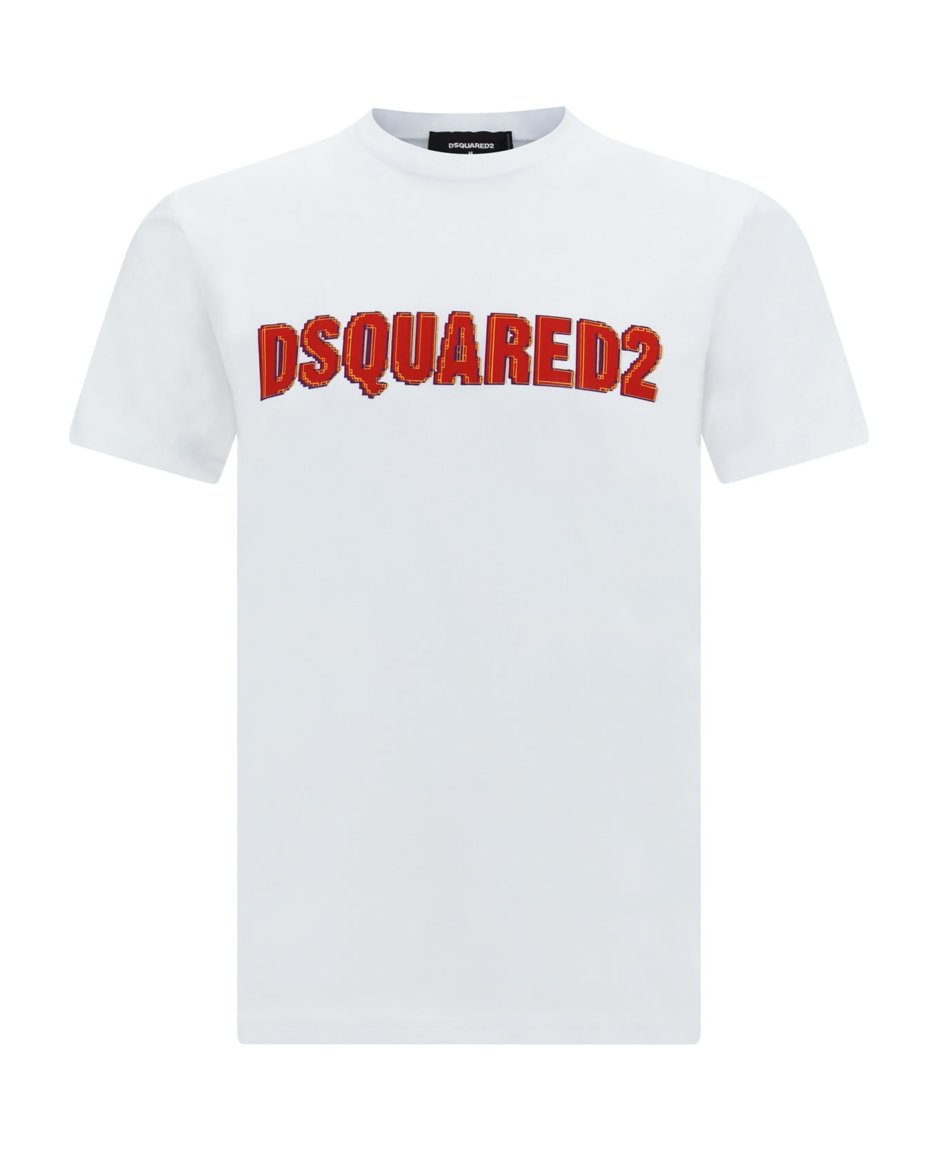 Cotton t-shirt by dsquared2, ribbed crew neck, iconic brand monogram printed in contrasting colour on the front, monochrome pattern, regular fit.
