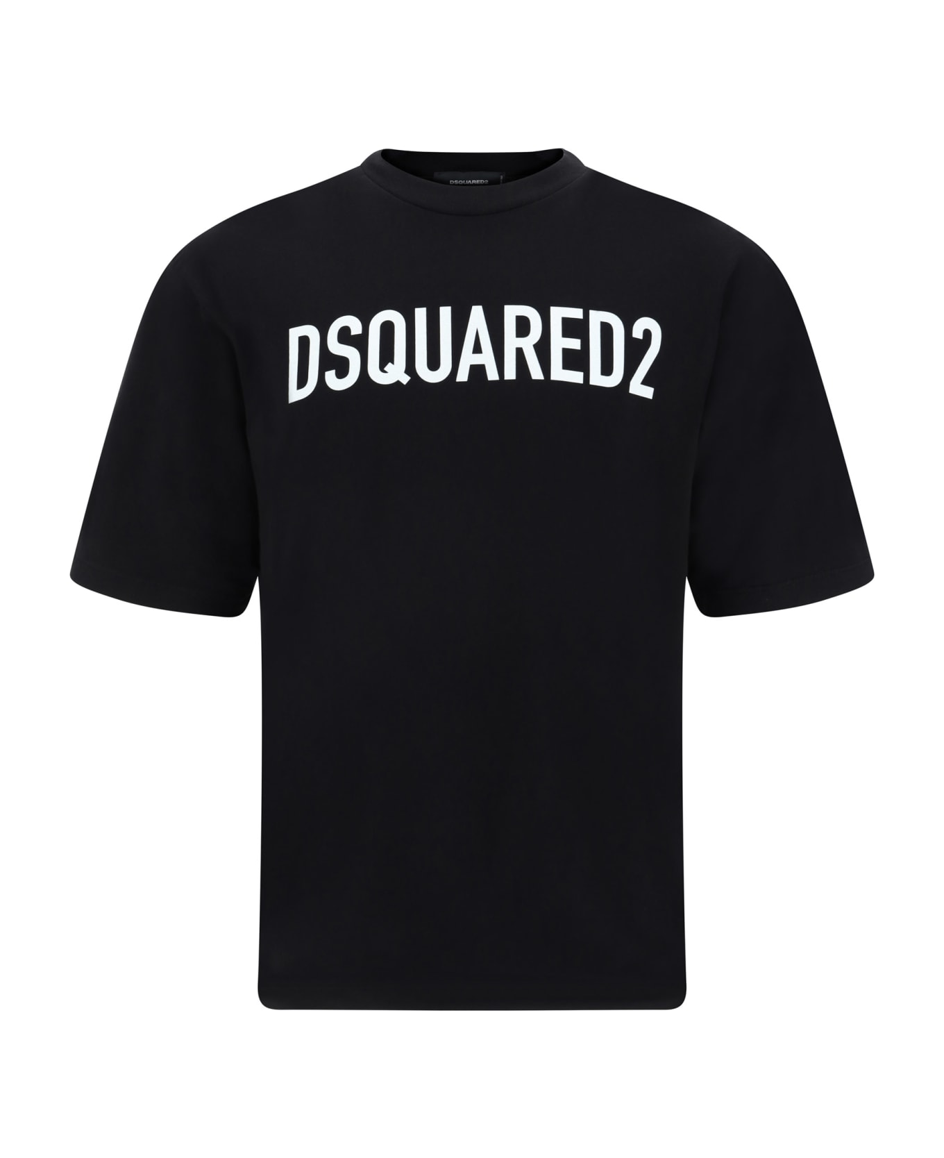 Cotton t-shirt by dsquared2, ribbed crew neck, iconic brand monogram printed in contrasting colour on the front, monochrome pattern, regular fit.