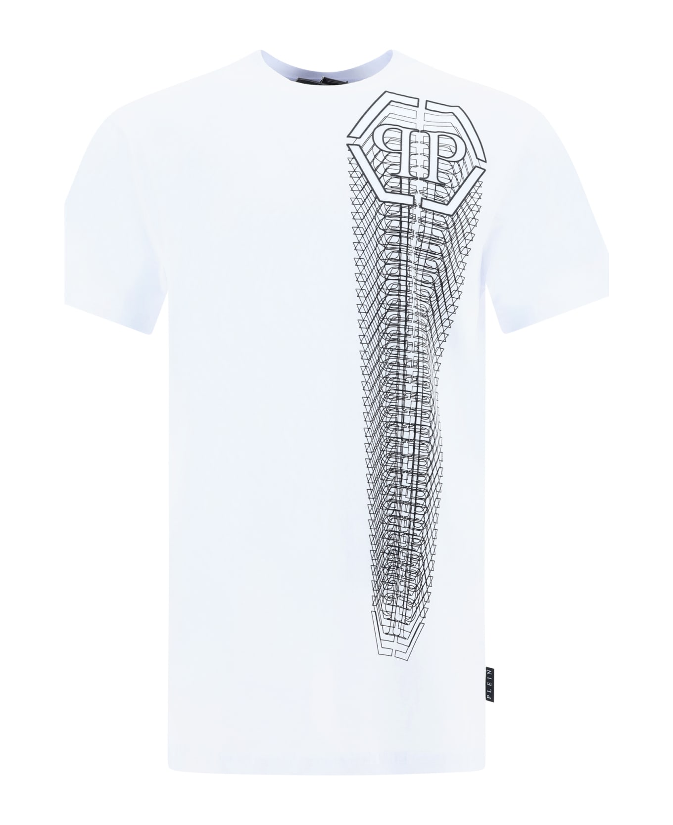 Cotton t-shirt by philipp plein, ribbed crew neck, pattern with iconic brand monogram repeated in contrast on front and back, oversize fit.