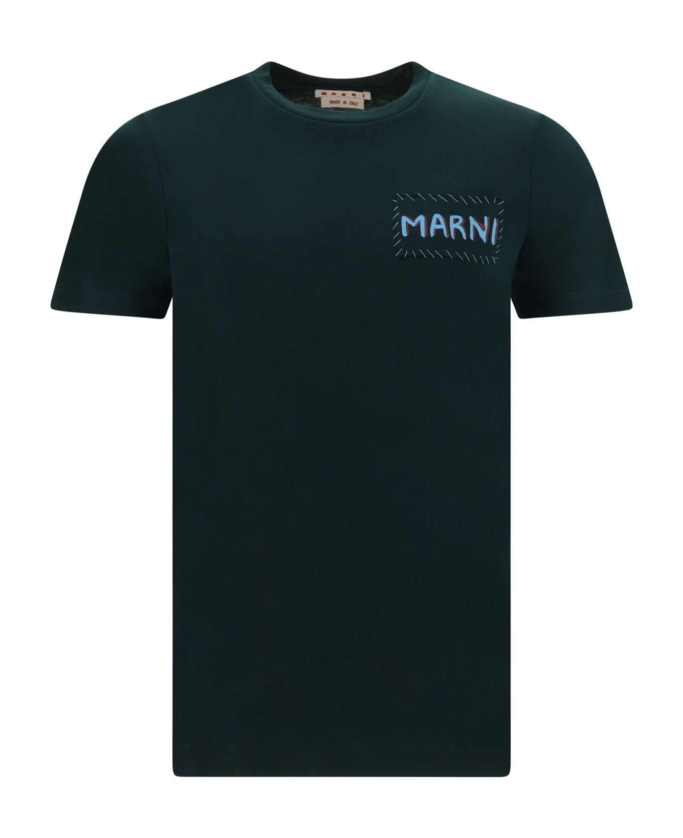 Cotton t-shirt by marni, ribbed crew neck, iconic brand monogram with contrasting embroidered stitching on front, regular fit. Composition: 100% % Cotton
