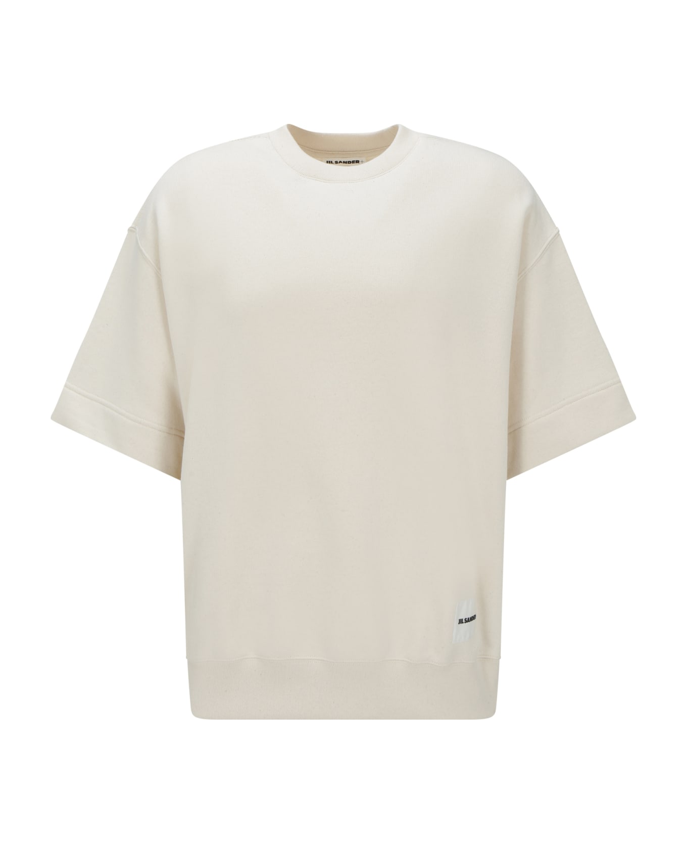 Cotton t-shirt by jil sander, ribbed crew neck, plush interior design, ribbed hem, brand's iconic monogram patch applied to front, monochrome design, oversize fit. Composition: 100% % Cotton