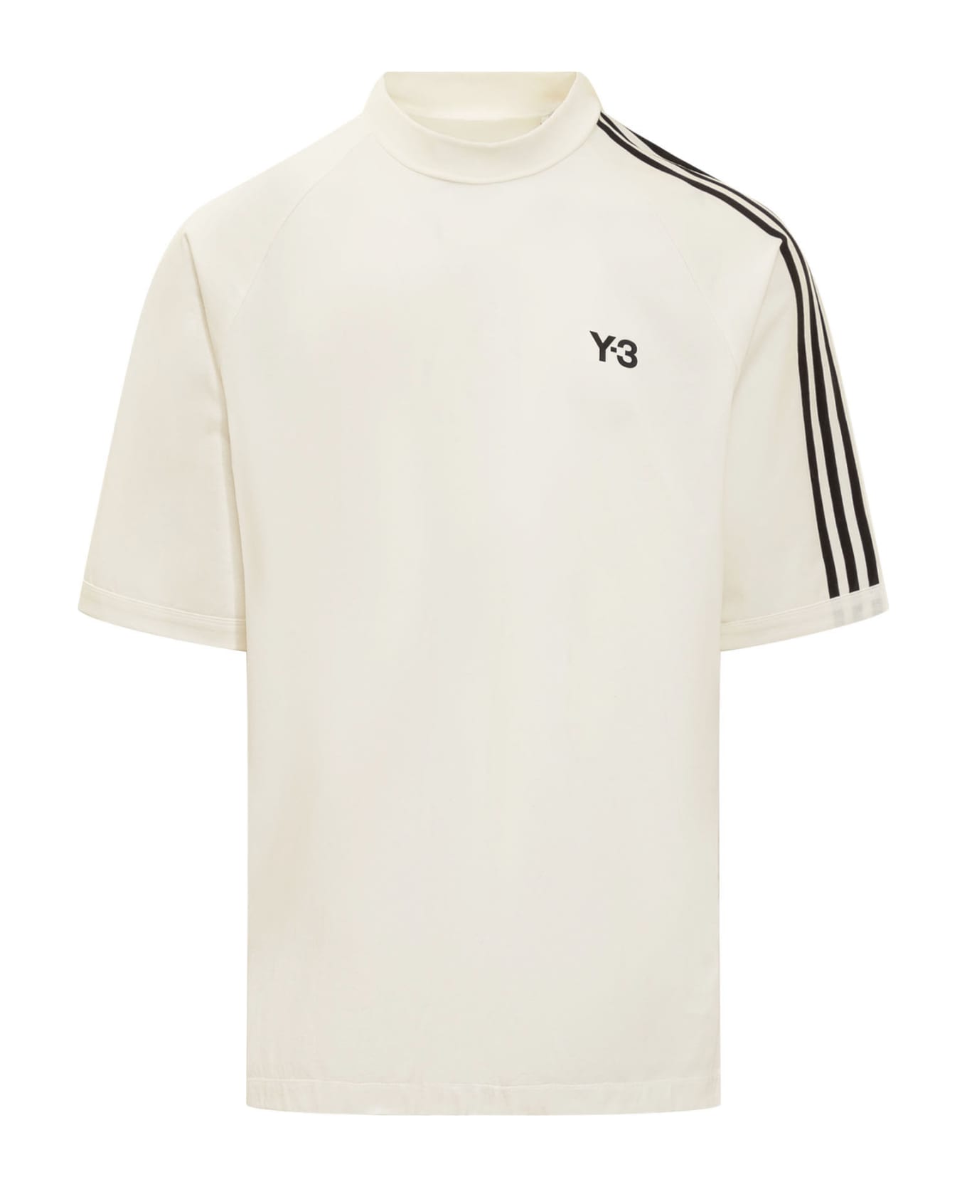 White T-shirt. Crew neck. Logo printed on the chest. Ribbed collar. Side slits.