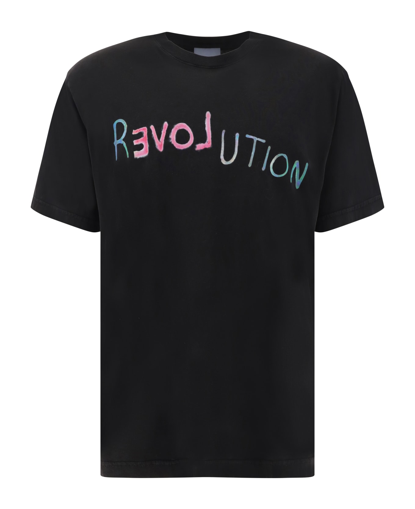 Cotton t-shirt by bluemarble, ribbed crew neck, monochrome design, multicolor applique print on front, regular fit.