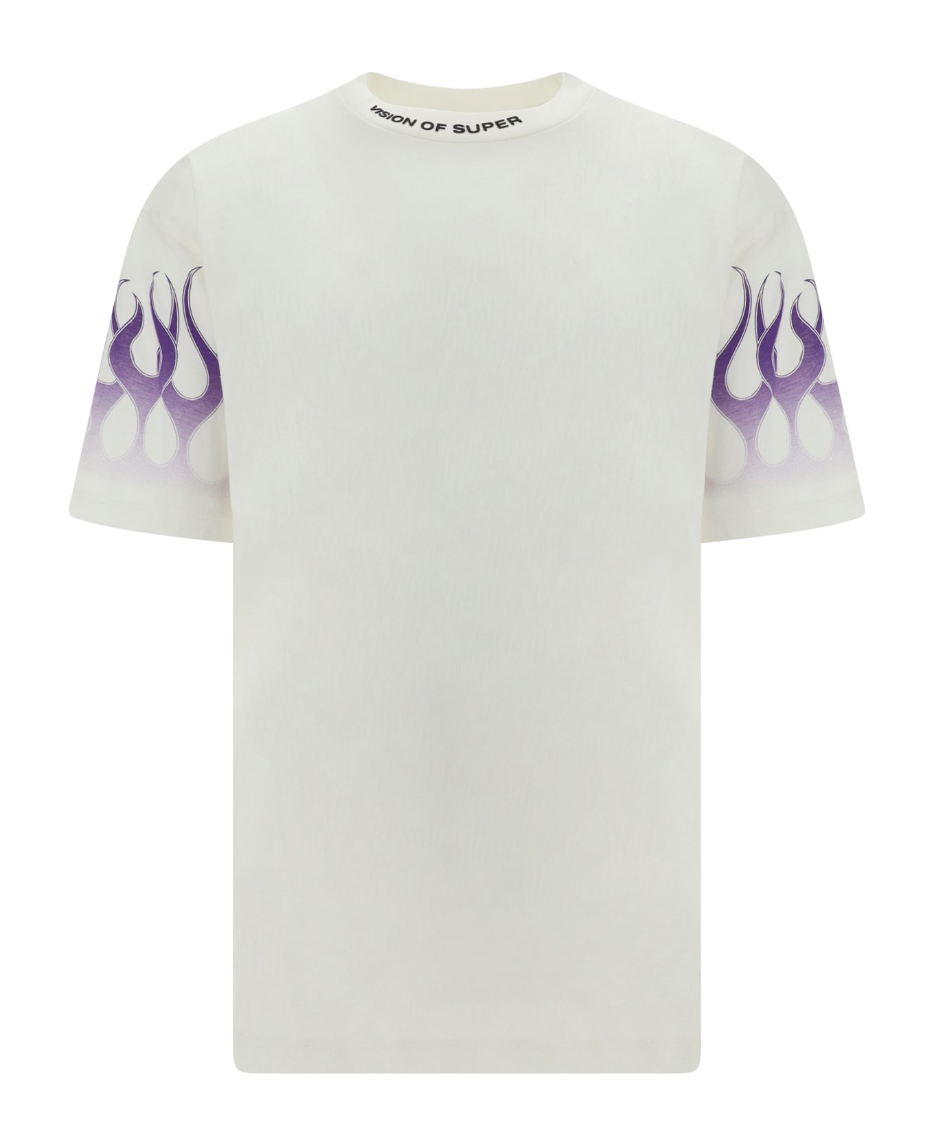 Cotton t-shirt by vision of super, ribbed crew neck, contrasting iconic brand monogram on crew neck, contrasting iconic brand flames printed on sleeves, regular fit. Composition: 100% % Cotton