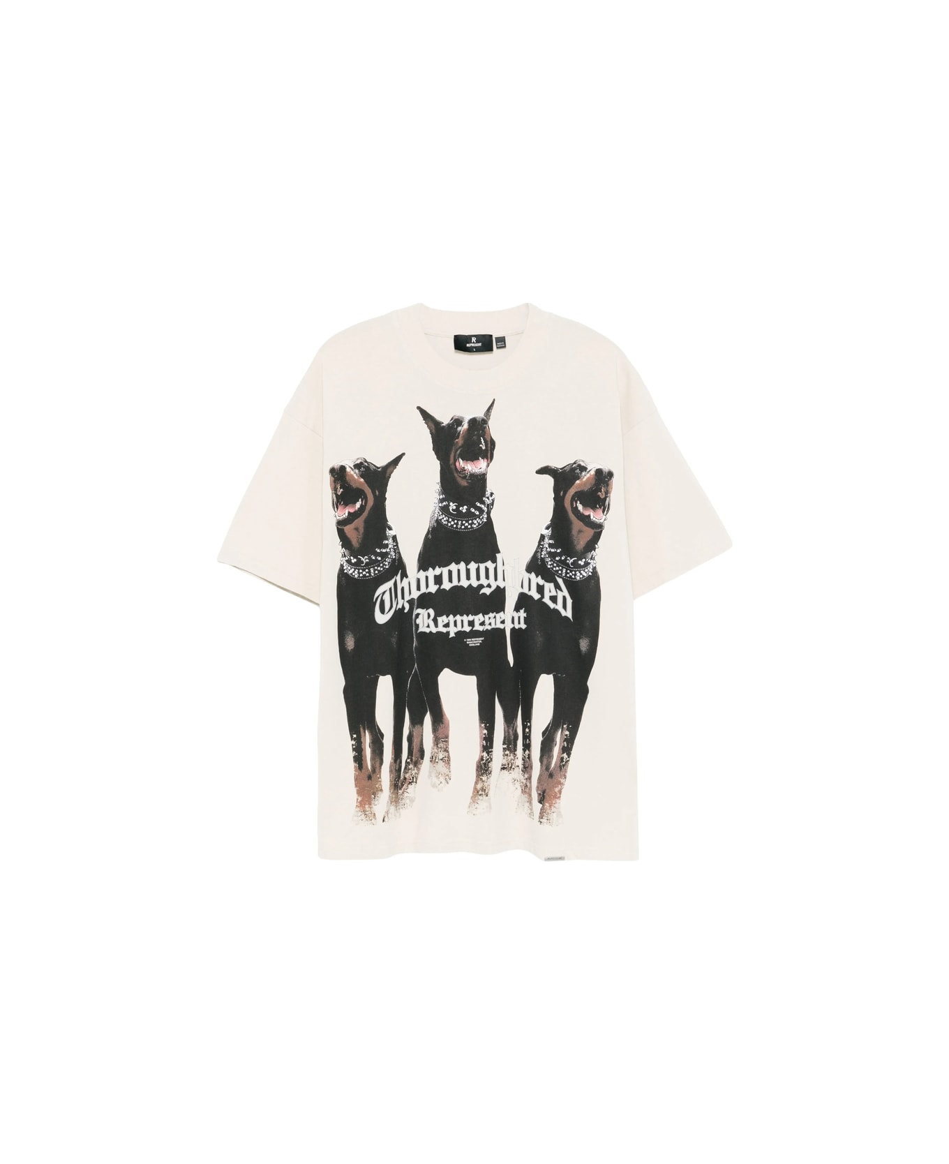 light beige/multicolour cotton jersey texture crew neck dog print logo print to the front drop shoulder short sleeves straight hem