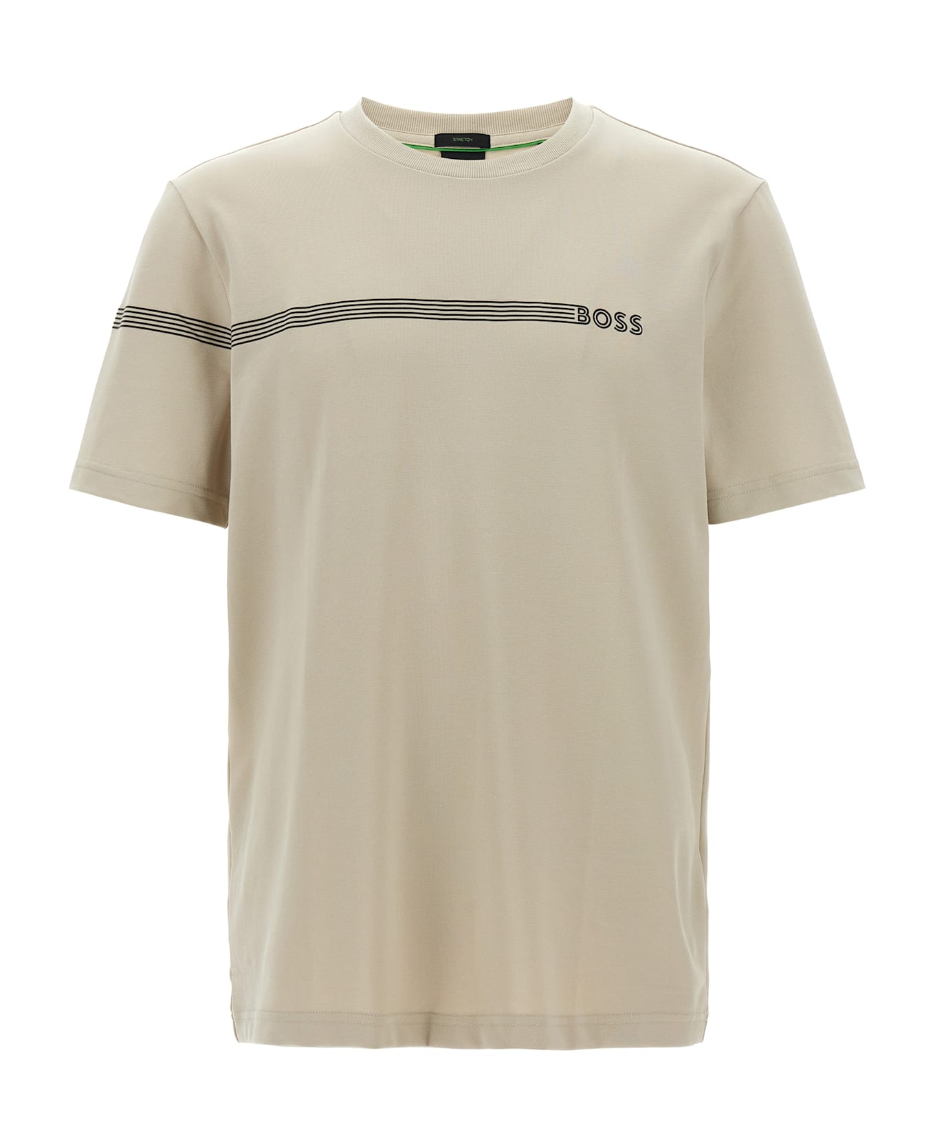 'Tee 5' stretch cotton blend piqué t-shirt, front embossed logo, crew neck, short sleeves.