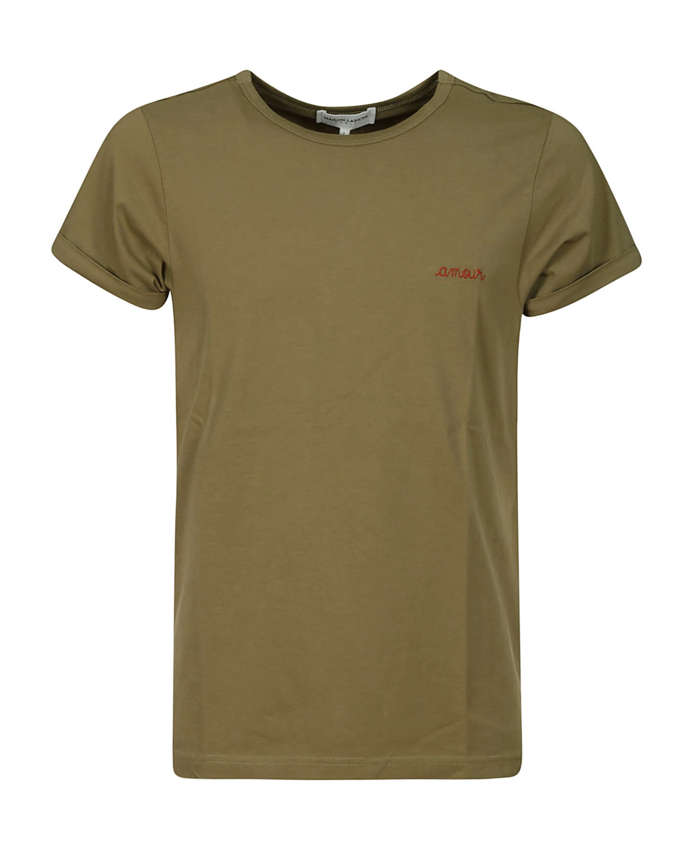 Maison Labiche Green cotton t-shirt, short sleeves, red embroidery on the chest.