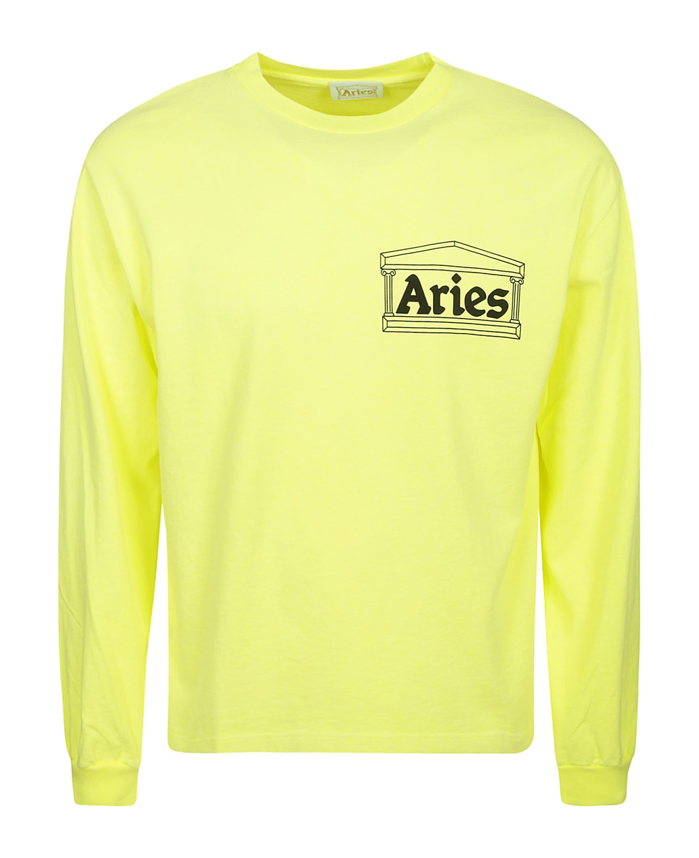 Aries Yellow cotton sweatshirt, logo print on the chest.