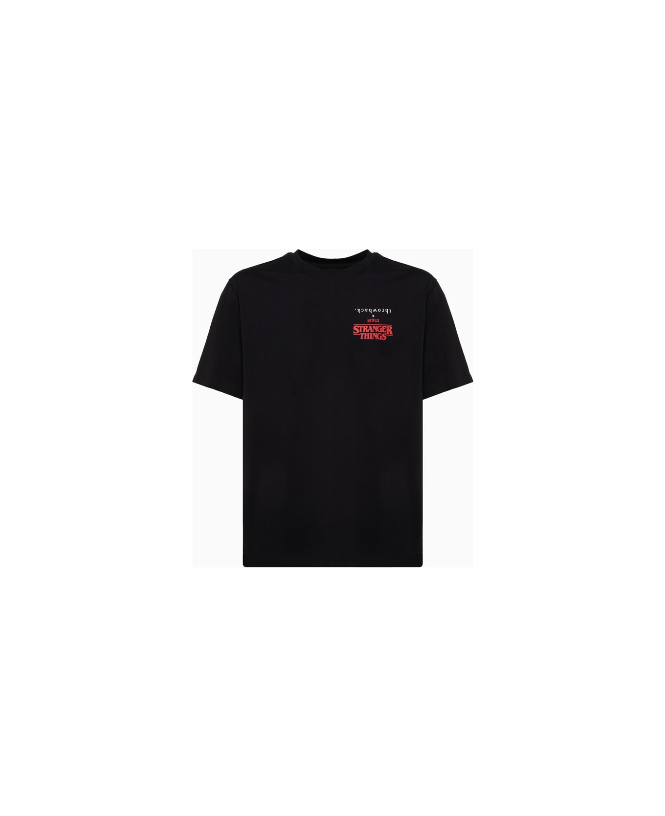 made in italy throwback x netflix stranger things crew neck t-shirt in solid color cotton. iconic netflix tv series set in the 80s on the adventures of some friends. short sleeves. logo print at chest and lettering print at back. loose fit. composition: 100% cotton.