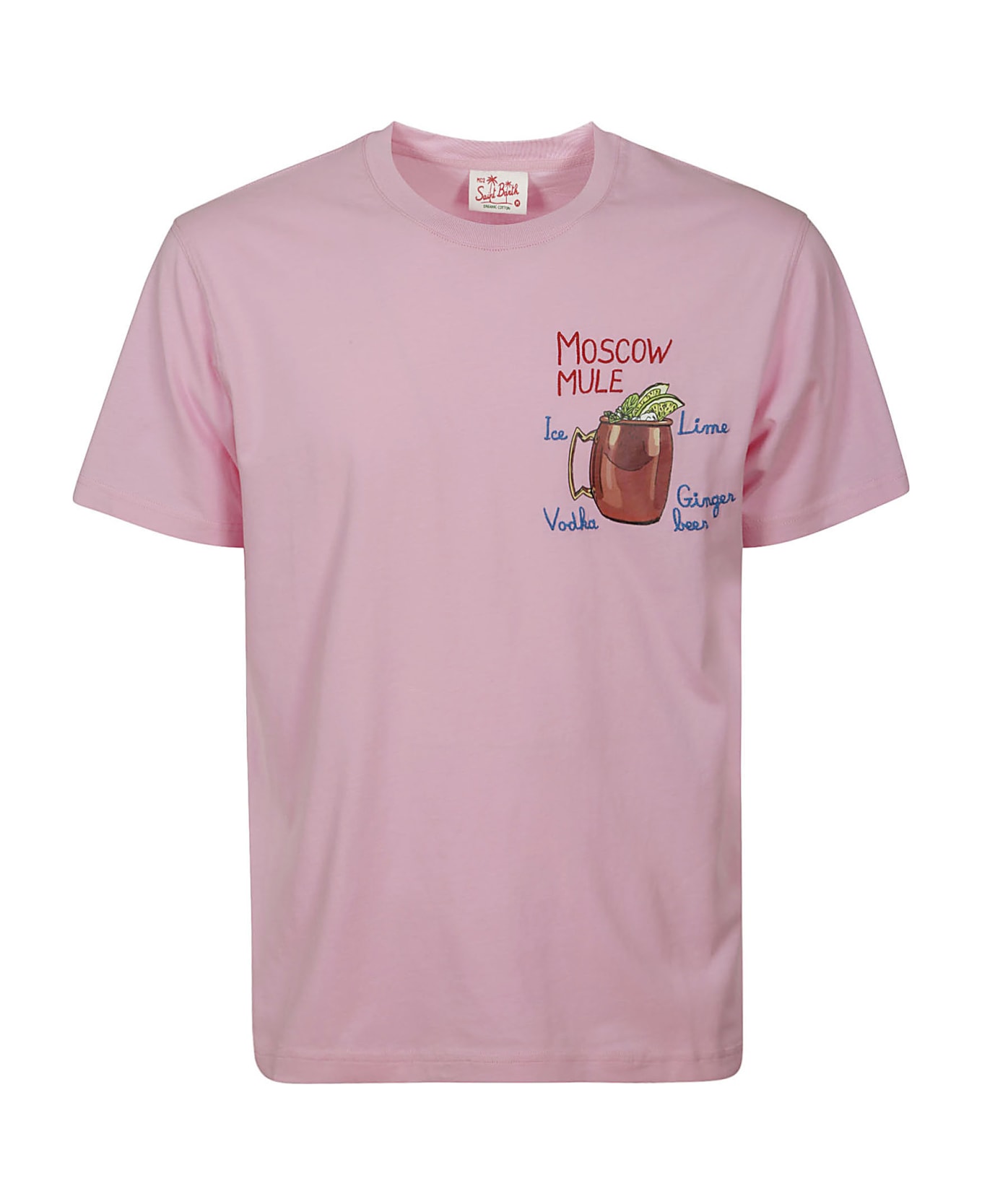 MC2 Saint Barth Pink cotton T-shirt, short sleeves, embroidery and print on the chest. Composition: 100% Co