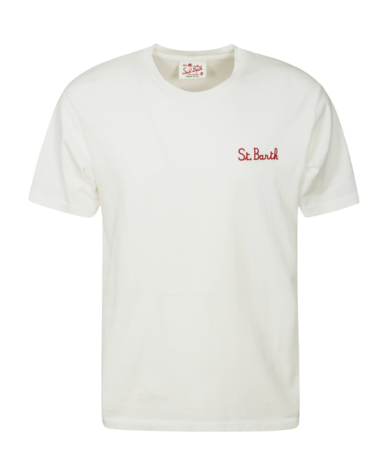 MC2 Saint Barth White cotton T-shirt, half sleeve, front embroidery, back print. Composition: 100% Co