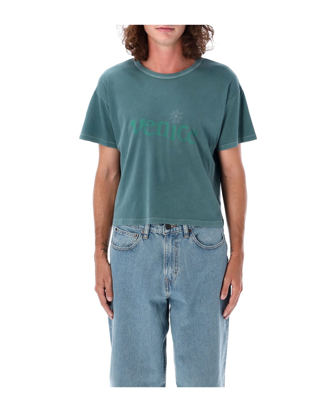 Venice T-shirt By Erl. Featuring: Relaxed Fit Soft Cotton Fabric Cropped Length "venice" Graphic Print On The Front Ribbed Crew Neck Collar Short Sleeves Model Is 1,90m And Wears Size L.