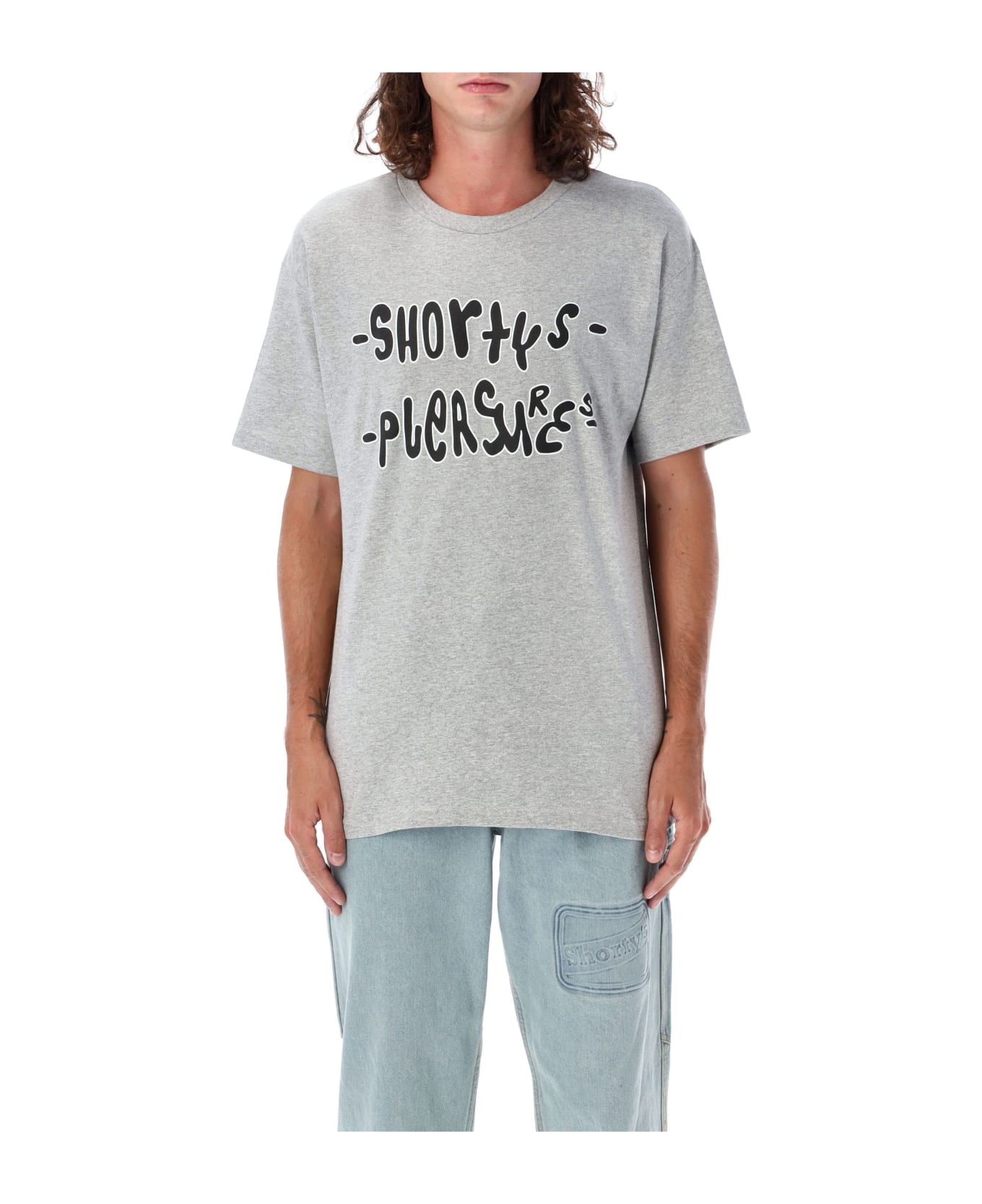 Wavy Shorty s Logo T-shirt By Pleasures. Featuring: Regular Fit Cotton Fabric Ribbed Crew Neck Collar Short Sleeves With A Classic Cut Wavy "shorty s Pleasures" Logo On Front Model Is 1,90m And Wears Size L.