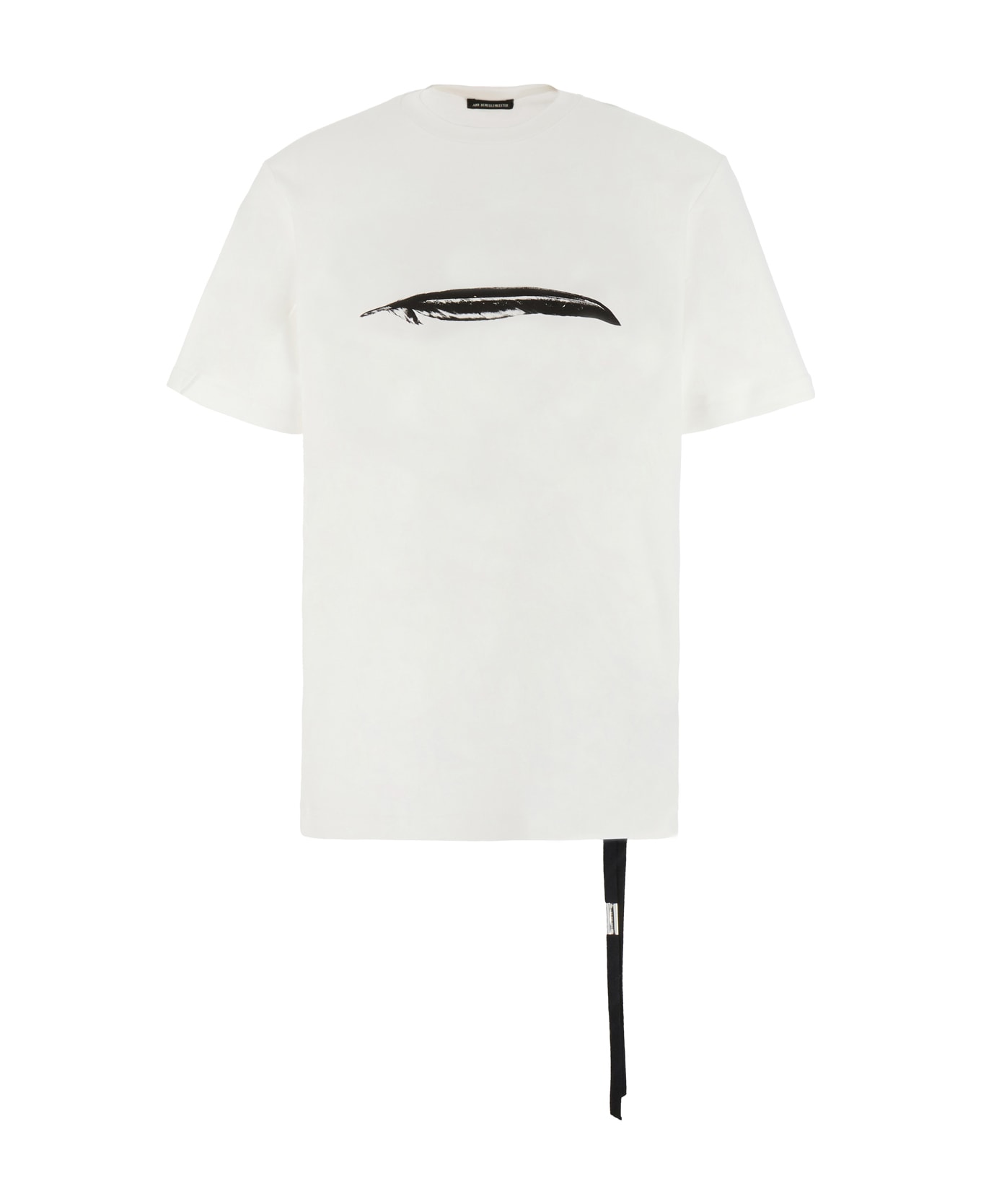 Oversize t-shirt realized in pure cotton characterized by peculiar contrasting print on the chest enriched by detachable tonal fabric insert on the hemline. -Ribbed crew-neck