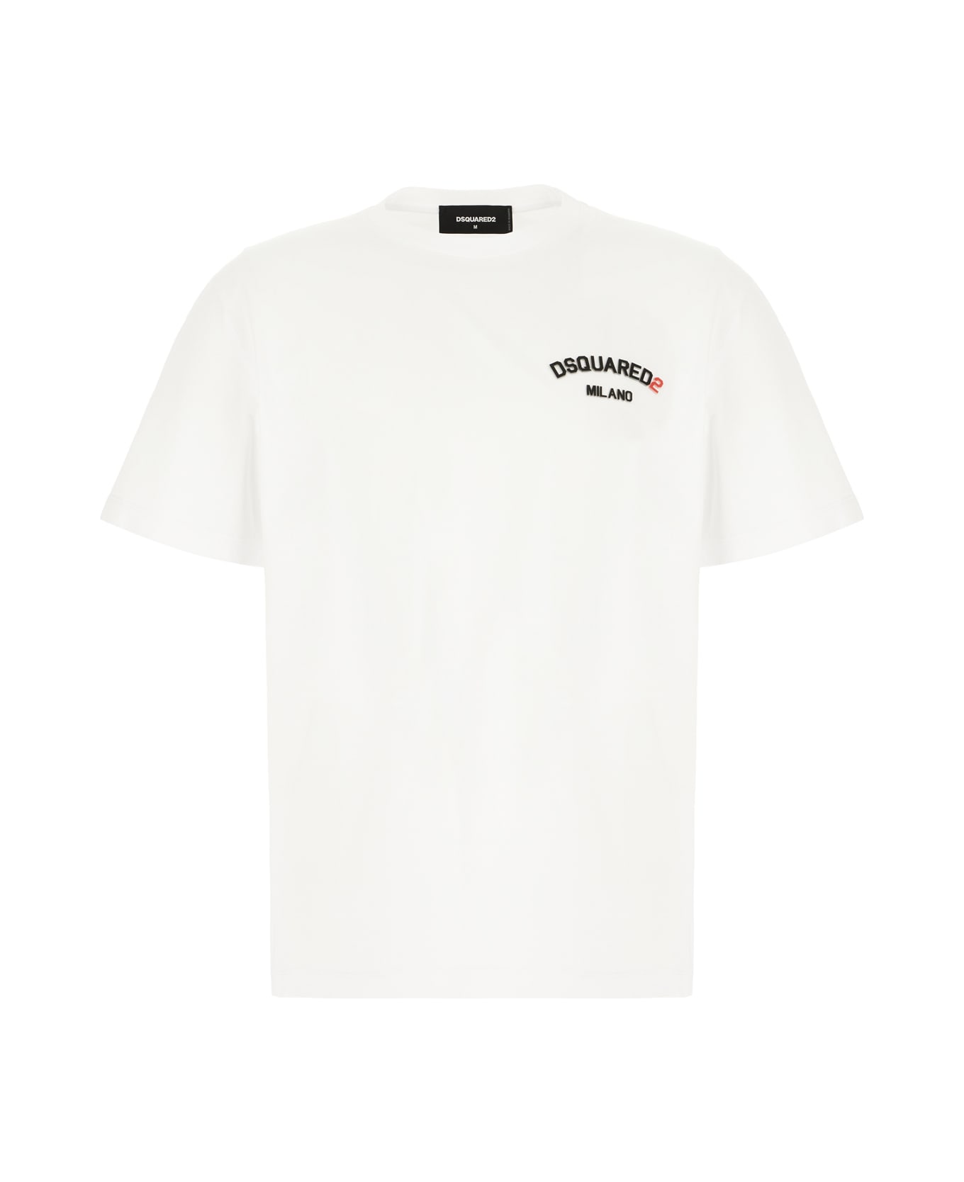 T-shirt realized in pure cotton characterized by contrasting printed logo in relief on the chest. -Ribbed crew-neck