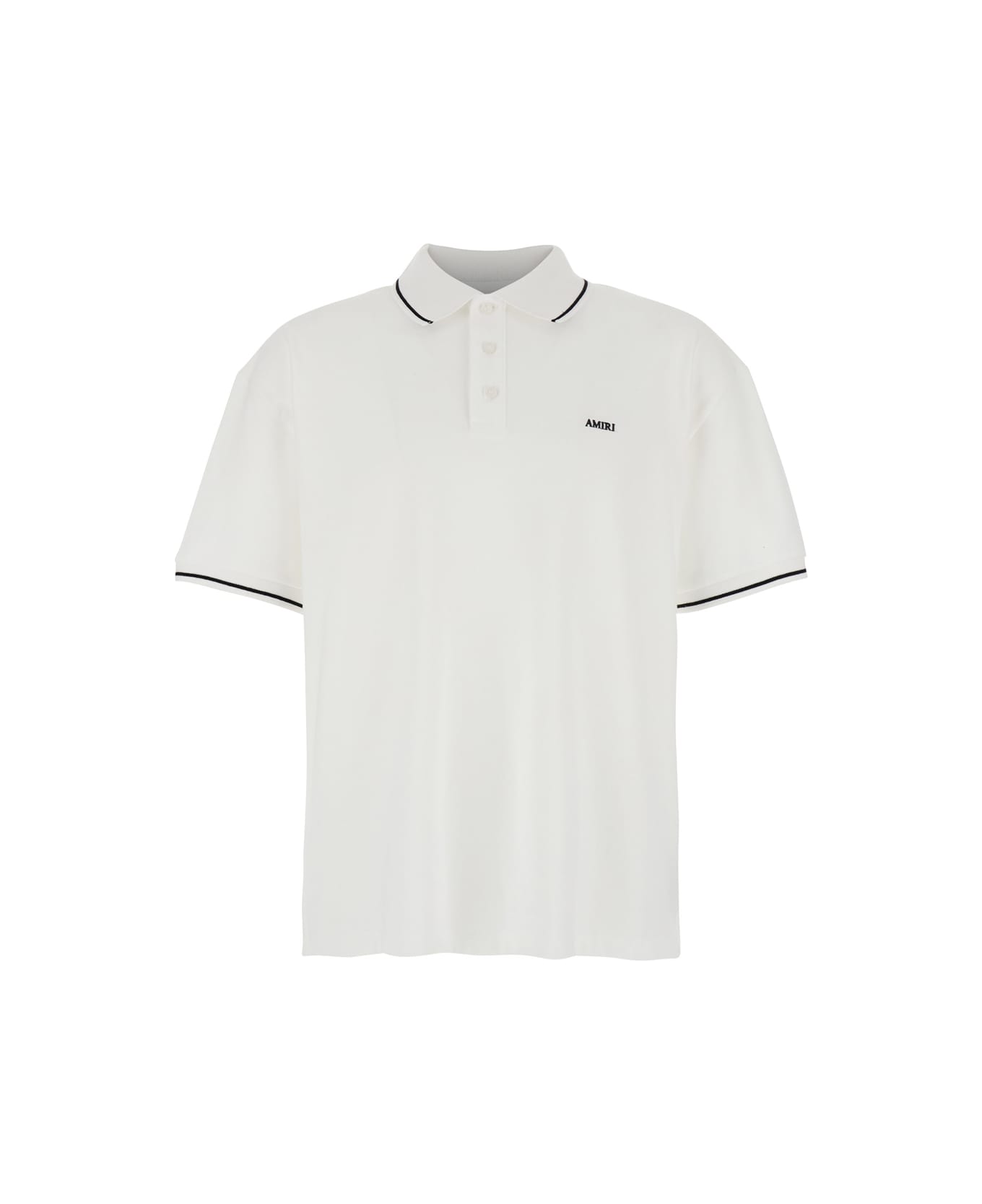 Polo shirt White Classic collar Short sleeves Striped detail on collar and sleeve Front button closure Logo lettering embroidery on the front Straight hem Cotton Regular fit