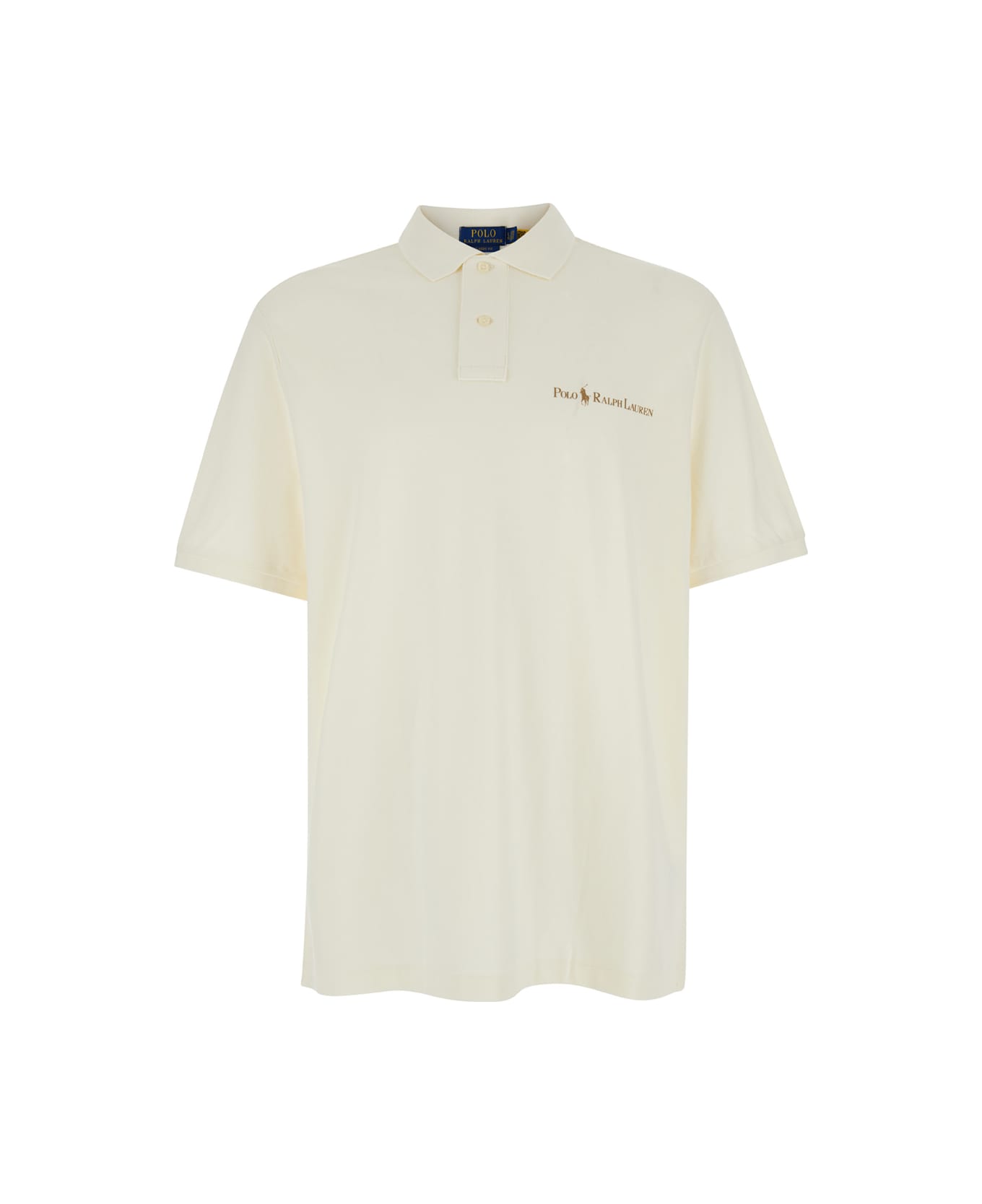 Polo shirt White Classic collar Short sleeves Front button closure Tonal buttons Logo lettering on the front Straight hem Tech fabric Regular fit