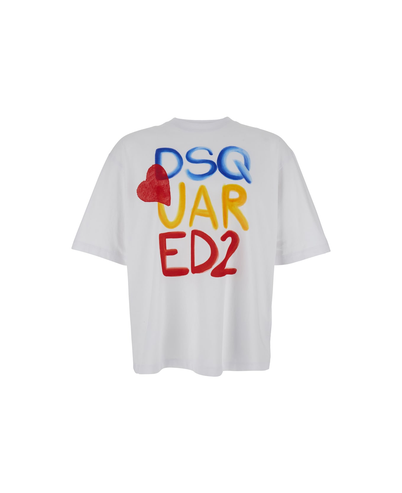 White Round Neck T Shirt With Printed Maxi Logo On The Front And Heart Detail In Cotton Woman