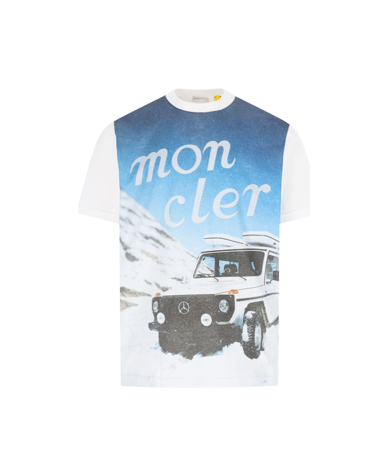 Moncler Genius X Mercedes-Benz By Nigo logo T-shirt in white cotton with crewneck, short sleeves, maxi multicolor logo print on the front, silver metal logo on the back, ribbed trim, straight hem.