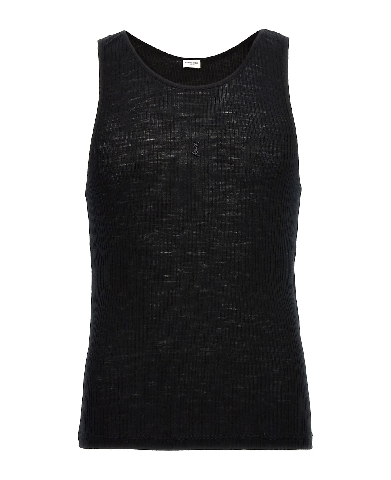 'Cassandre' semi-transparent ribbed wool tank top with front logo embroidery. Composition: 100% wool