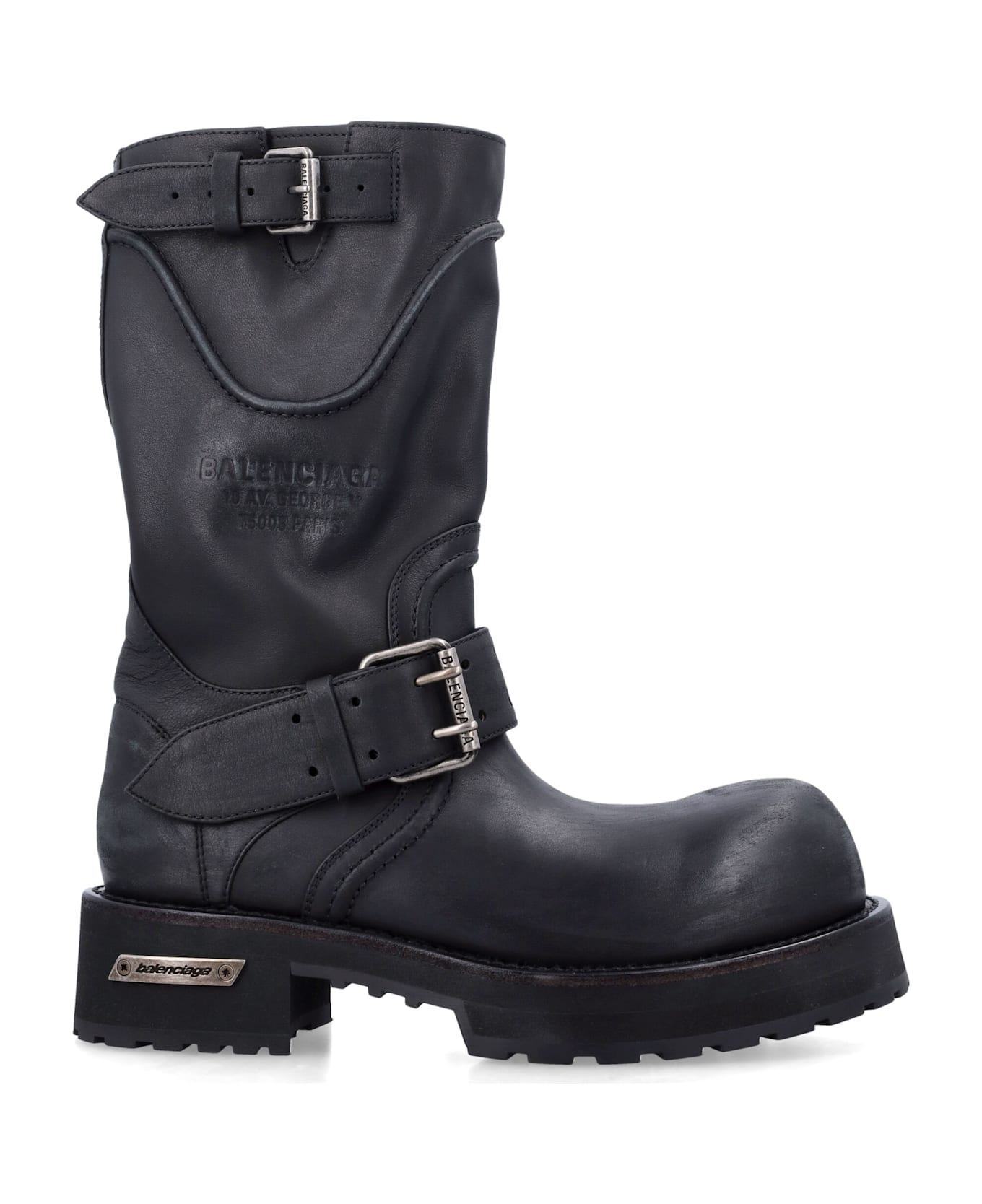 Rugged And Distinctive, The Balenciaga Harness Boots Are Crafted From Black Leather With A Bold Biker-inspired Silhouette. Featuring Adjustable Buckle Straps, Embossed Logo Details, And A Sturdy Lug Sole, They Combine Utilitarian Edge With Luxury Craftsmanship. A Statement Pair Designed To Add Character And Durability To Contemporary Wardrobes. Upper In Calf Leather
