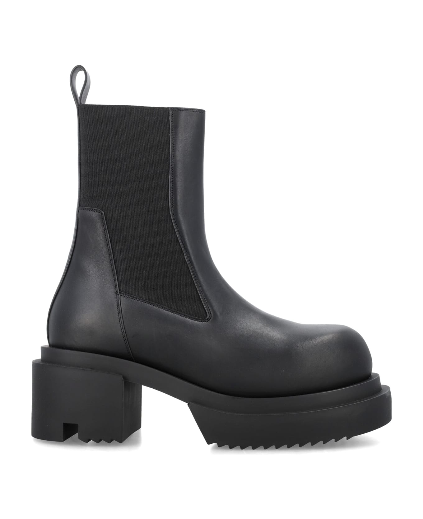 Beatle Bogun Boots By Rick Owens. Featuring: Above-ankle Height Geometric Side Panels In Stretch Elastic Angular Heel Counter With Topstitching And Back Pull Tab Rounded Toe Squared Heel Rubber Sole Heel Height: 5,5cm