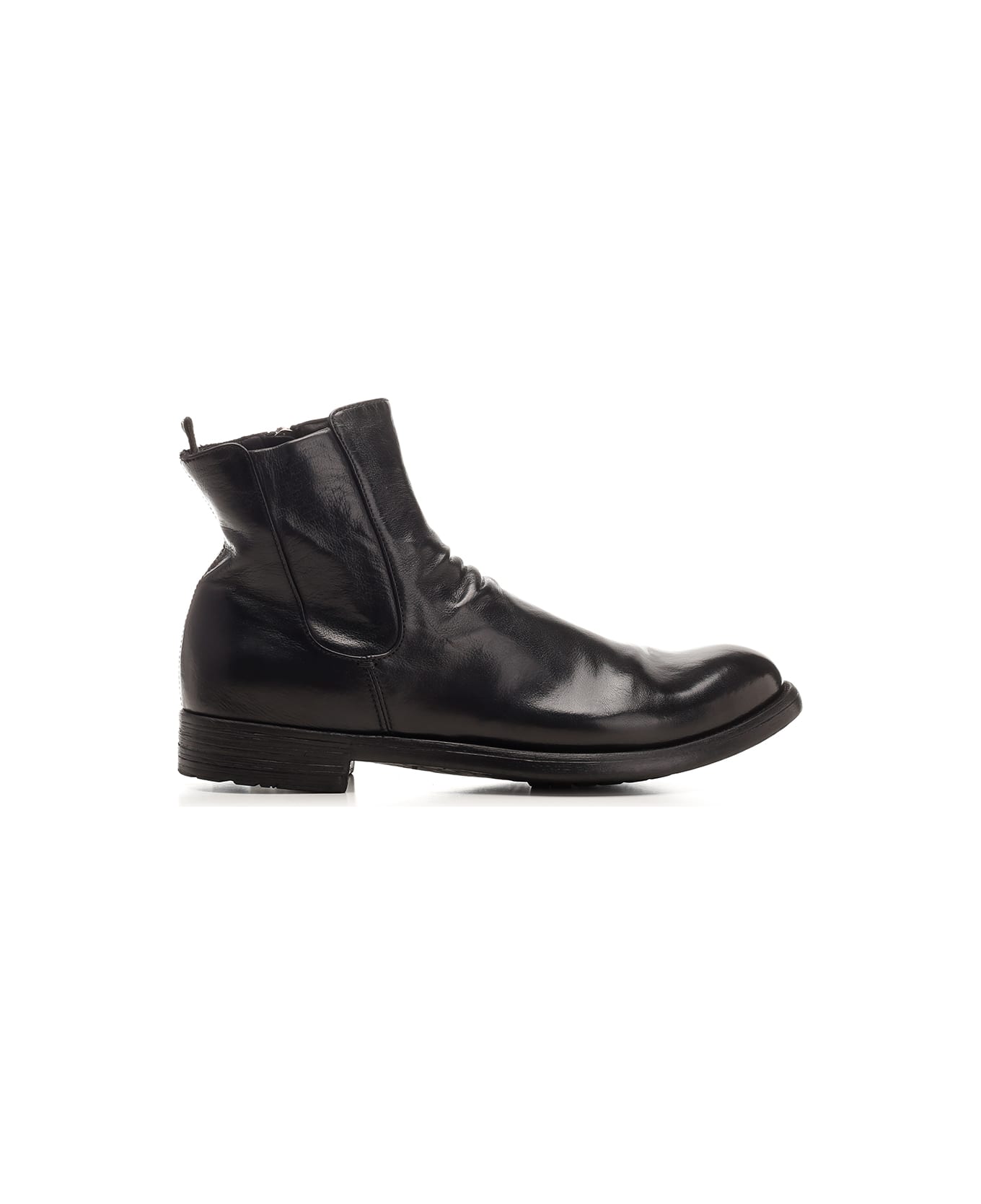 Black ankle boot in shiny nappa with side zip and rubber sole from Officine Creative.
