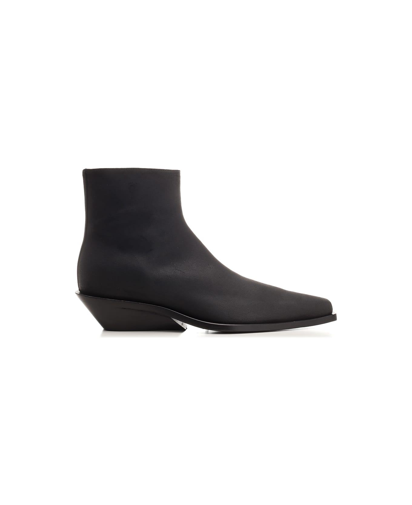 Black "Ricardo" leather ankle boots with square toe, heel and rubber sole from Ann Demeulemeester.