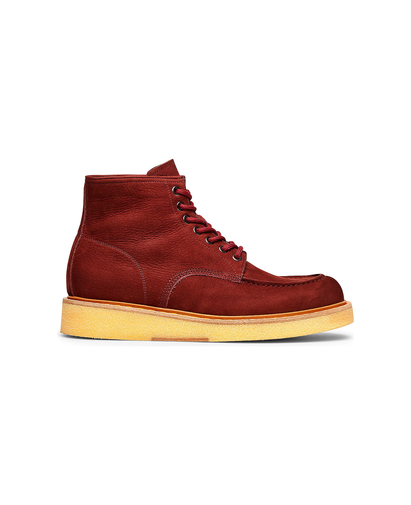 soft calfskin combat boots with raised stitching. the porox sole is exceptionally light and versatile. leather welt. contrasting stitching and leather lining. colour: red material: calfskin
