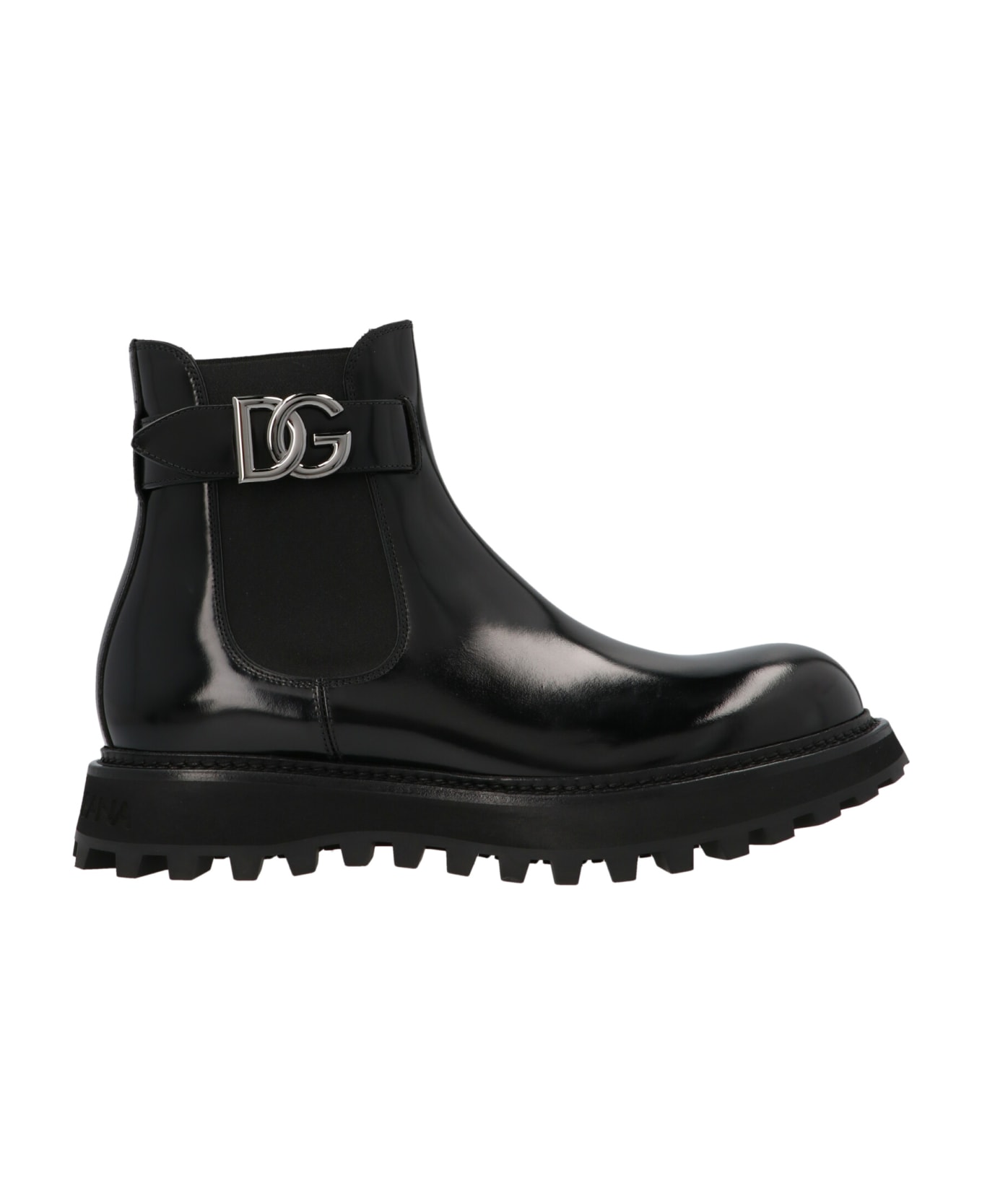 Leather beatle-style ankle boots with a tank sole and a logo buckle. Composition: 100% calfskin leather
