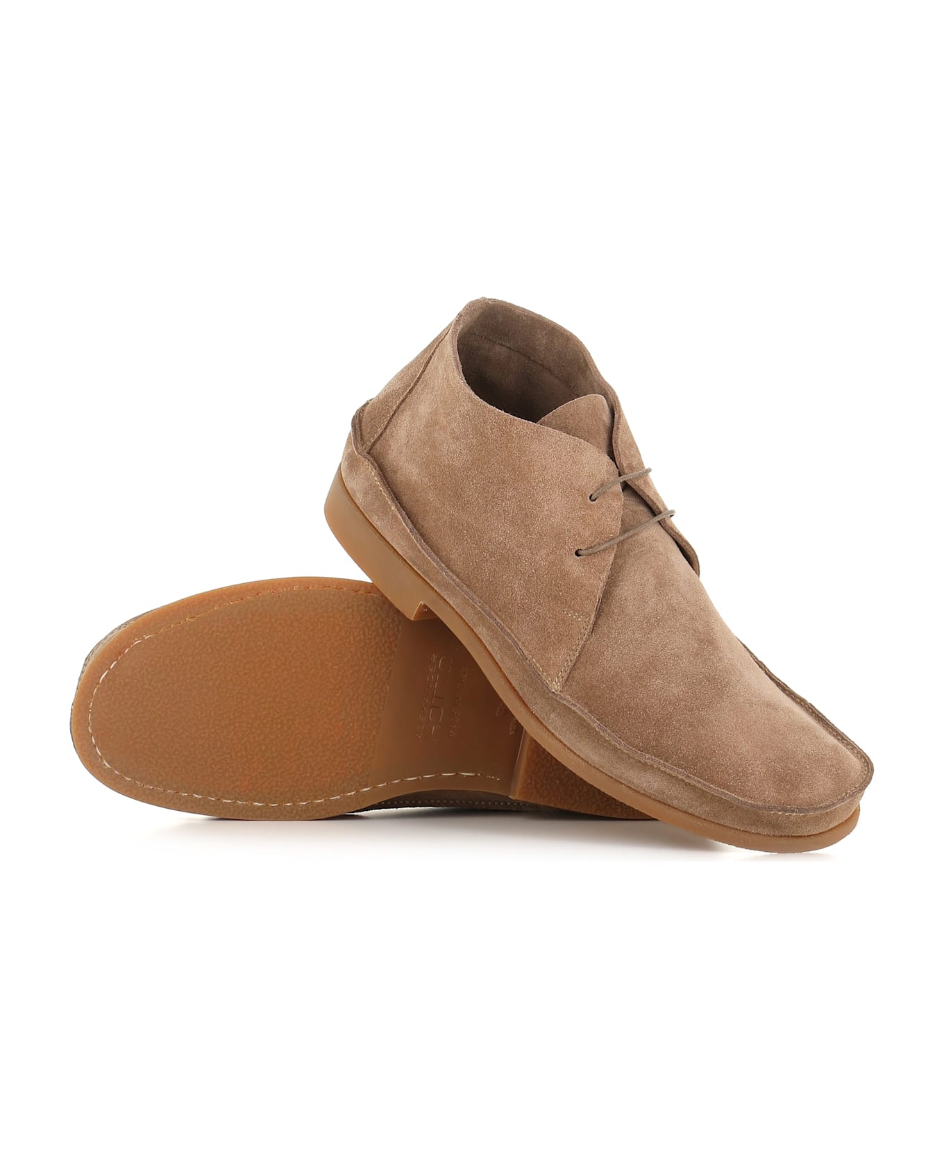 Beige soft suede men Desert Boot by Alexander Hotto, featuring by a a square toe. Rubber sole. Unlined interior. Heel: 2,5 cm